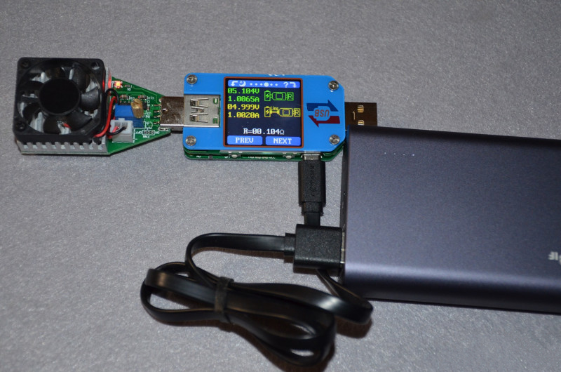 Крайне полезно представлять для себя работоспособность кабелей. Короткие обычно работают лучше. Кабели с длиной более одного метра имеют приличные потери. Падение напряжения очень заметно при больших токах, например, более 1,5 Ампер. Наличие режима быстрой зарядки типа QC3.0 может частично компенсировать потери на кабеле, но не во всех случаях. Да и просто проверить работоспособность кабеля не помешает. Тест кабеля на внутреннее сопротивление. На фото значение 0,1 Ом при длине 20 см и токе 1 А.