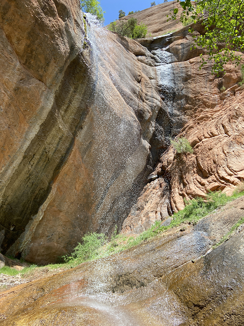 Имеется водопад, при такой сухой погоде довольно маловодный. Надо бы прийти сюда после дождя...