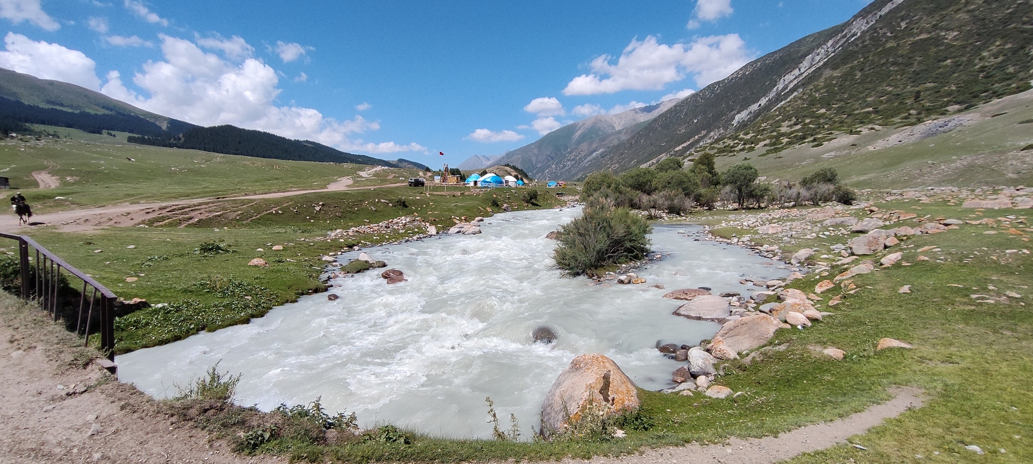 Если ехать дальше по грунтовке, по дуге попадаешь в Григорьевское ущелье. Там уже и юрты, живая форель по 800 за кг, катания на лошадях, фото с орлом, только сомиков доставай из кошелька. Жизнь кипит, турист идёт на нерест. Дорога становится похуже, но проходима без проблем на любом автомобиле. Обычно все ездят в обратном порядке: из Григорьевского в Семёновское, судя по отзывам, но по мне так лучше наоборот. После Григорьевского Семёновское ущелье будет выглядеть скучно. Здесь уже долго не гуляли. Остановка в живописном месте, фото и по коням.