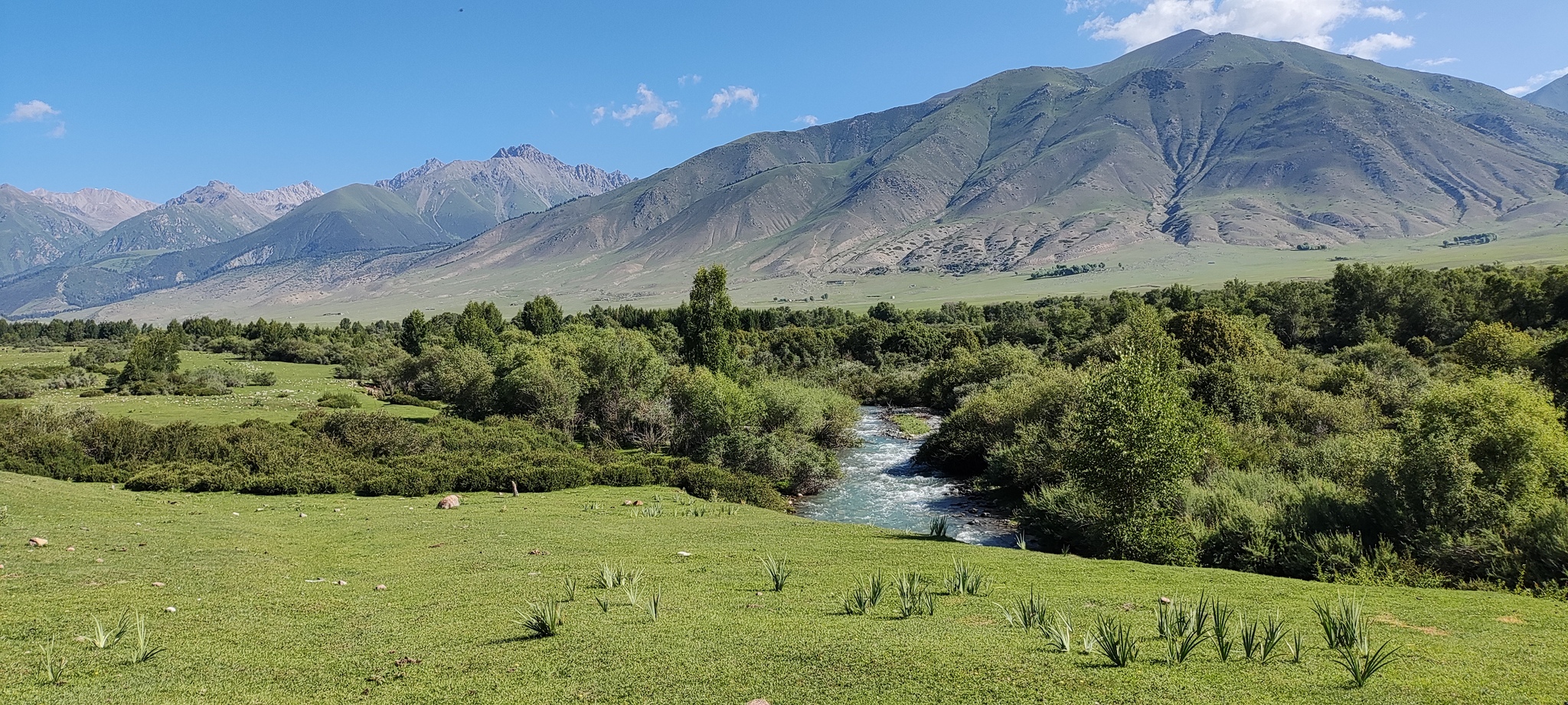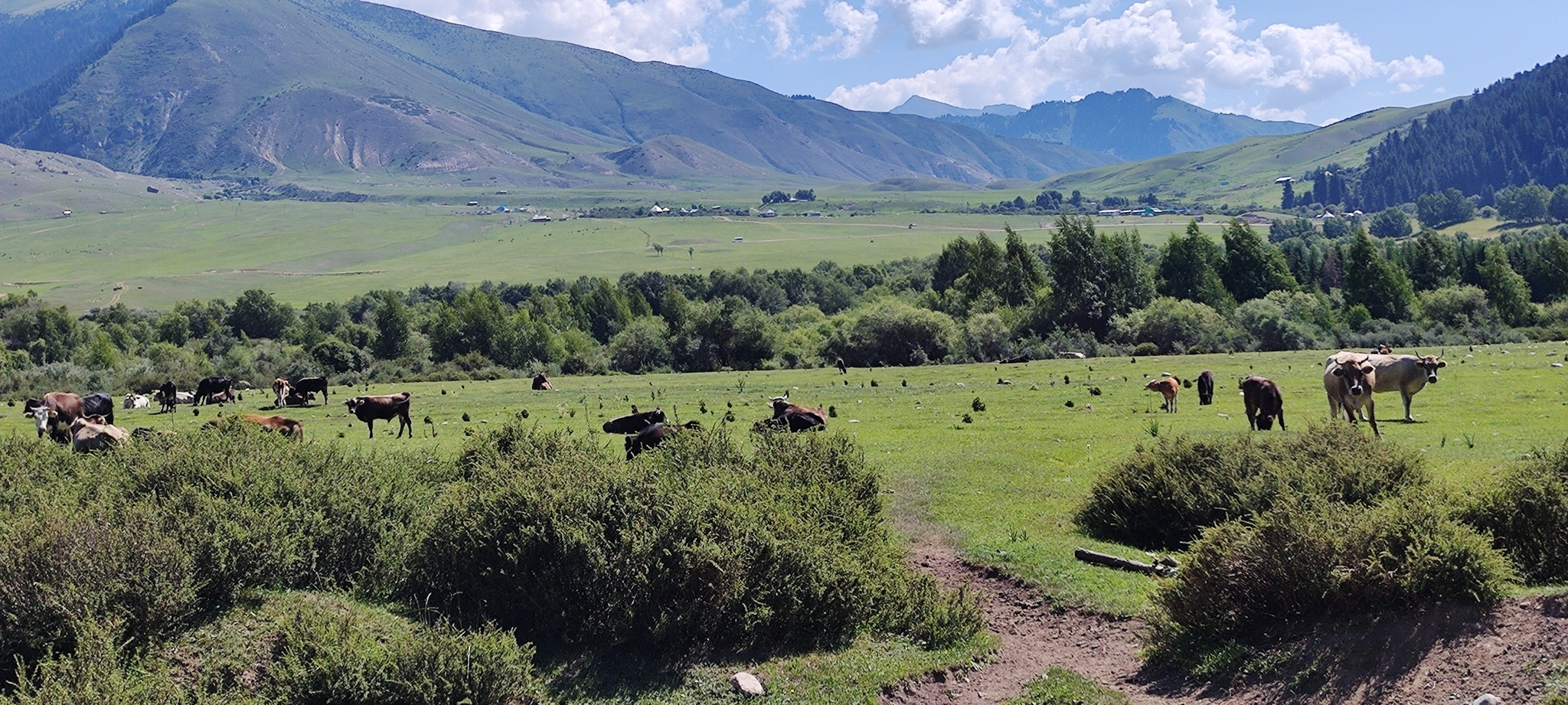 В 40 км от Чолпон-Ата поворот налево в селе Семёновка ведёт в Семёновское ущелье. Поначалу асфальт лучше, чем на основной дороге. Потом до точки в 2Гис, называемой Семёновское ущелье, ещё 4 км ровной грунтовки. Там же можно перейти через реку по мосту и прогуляться. Людей почти нет, туристов нет вообще, коровы жуют траву. На ущелье не особо похоже, но симпатично.