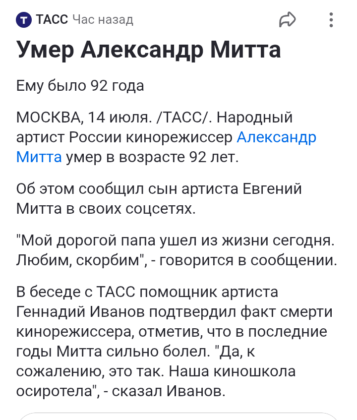 Ушёл из жизни Митта