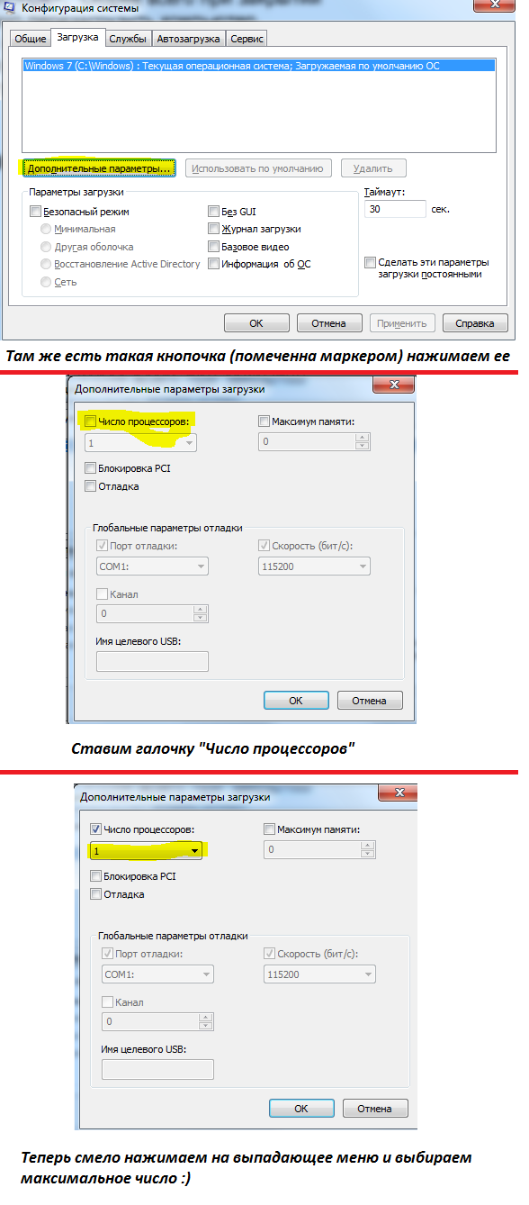 как бы так ты узнаешь количество процов или ядер. Если галочка не стоит, то система автоматом использует все доступные.