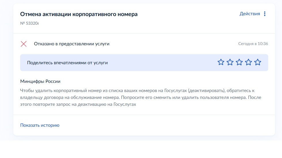 И как видно есть кнопка Деактивировать, т.е. я как пользователь сообщаю государству, что симкарта больше не у меня и всё то зло, что будет совершено с её помощью не имеет ко мне отношения. Если работодатель не внесёт данные нового пользователя этой симки - её заблокируют.