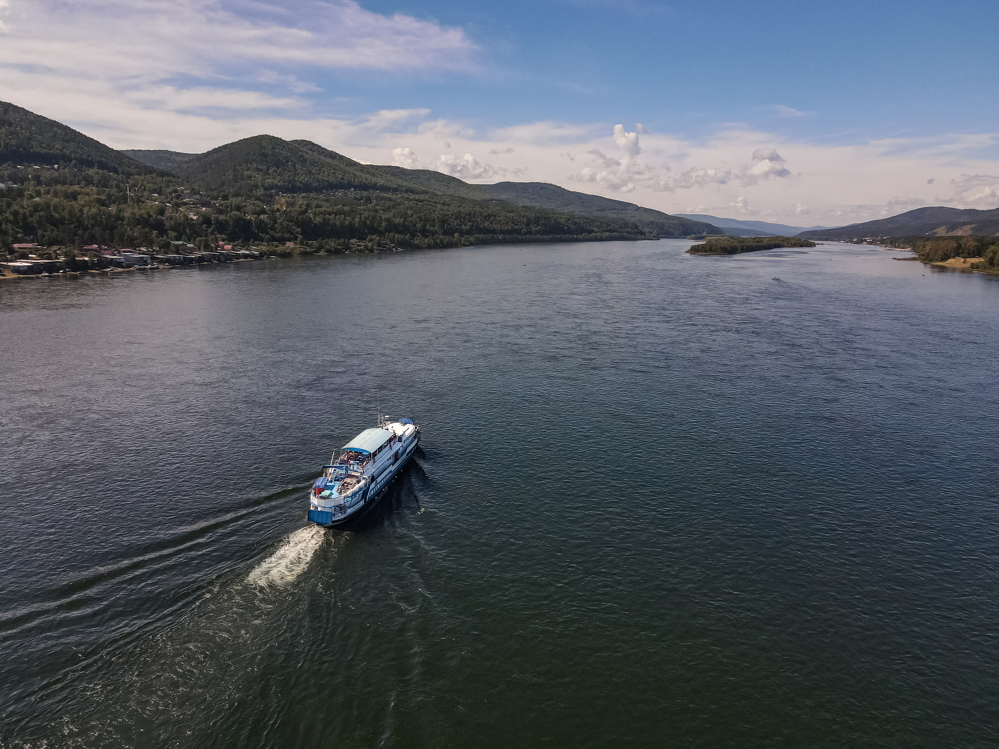 Люди сплавляются на байдарках по Енисею. Я бы не рискнул - вода очень холодная.