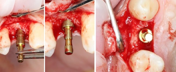 Далее мы убираем временный абатмент, который в данном случае выполнял функцию имплантодержателя