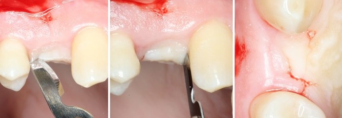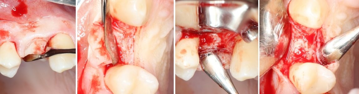 После проведенной анестезии, при помощи скальпеля производится - разрез, а так называемого распатора - скелетирование кости. (отделение надкостницы от компактного вещества кости).