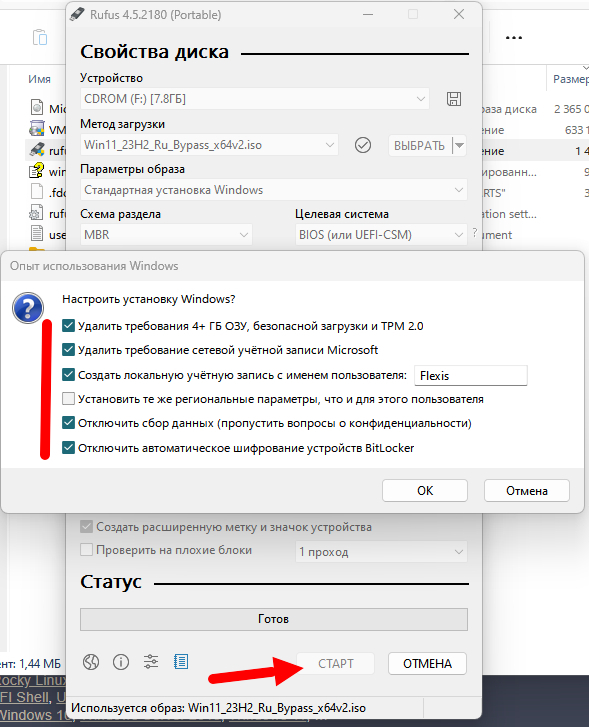 BypassSecureBootCheck –с Legacy BIOS (или UEFI с отключенным Secure Boot)