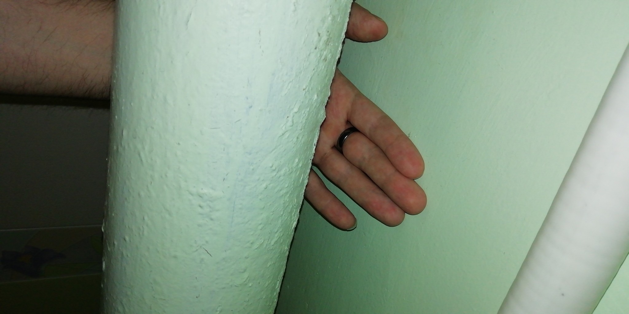 Когда переехали в новую квартиру, канализационная труба в туалете выглядела примерно так: