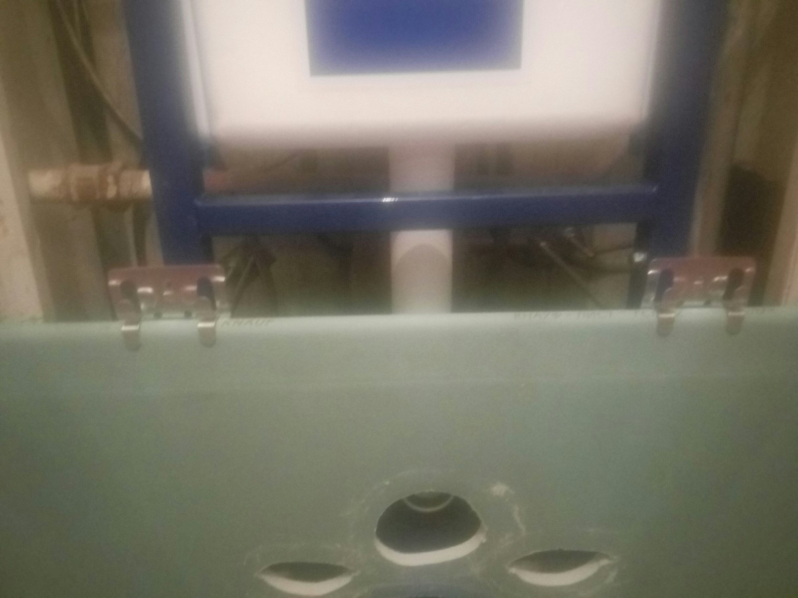 1. Сделан каркас из брусков 40*30 (передний план) и 45*45 (задний план), на бруски установлены уголкиПокрашенный белым профиль - опора для крепления унитаза.