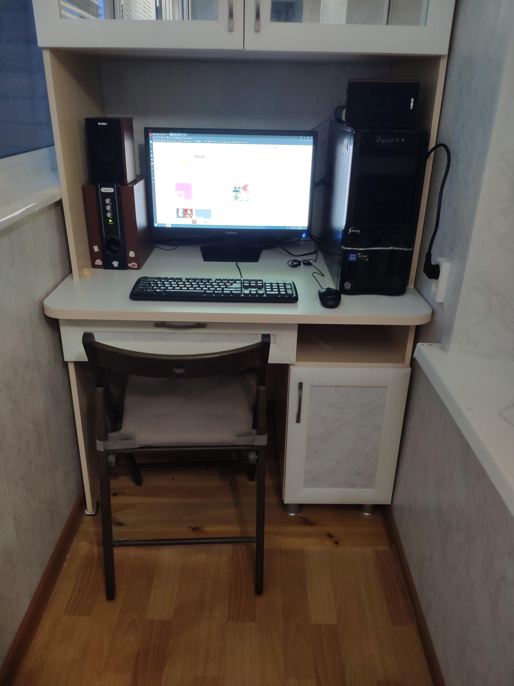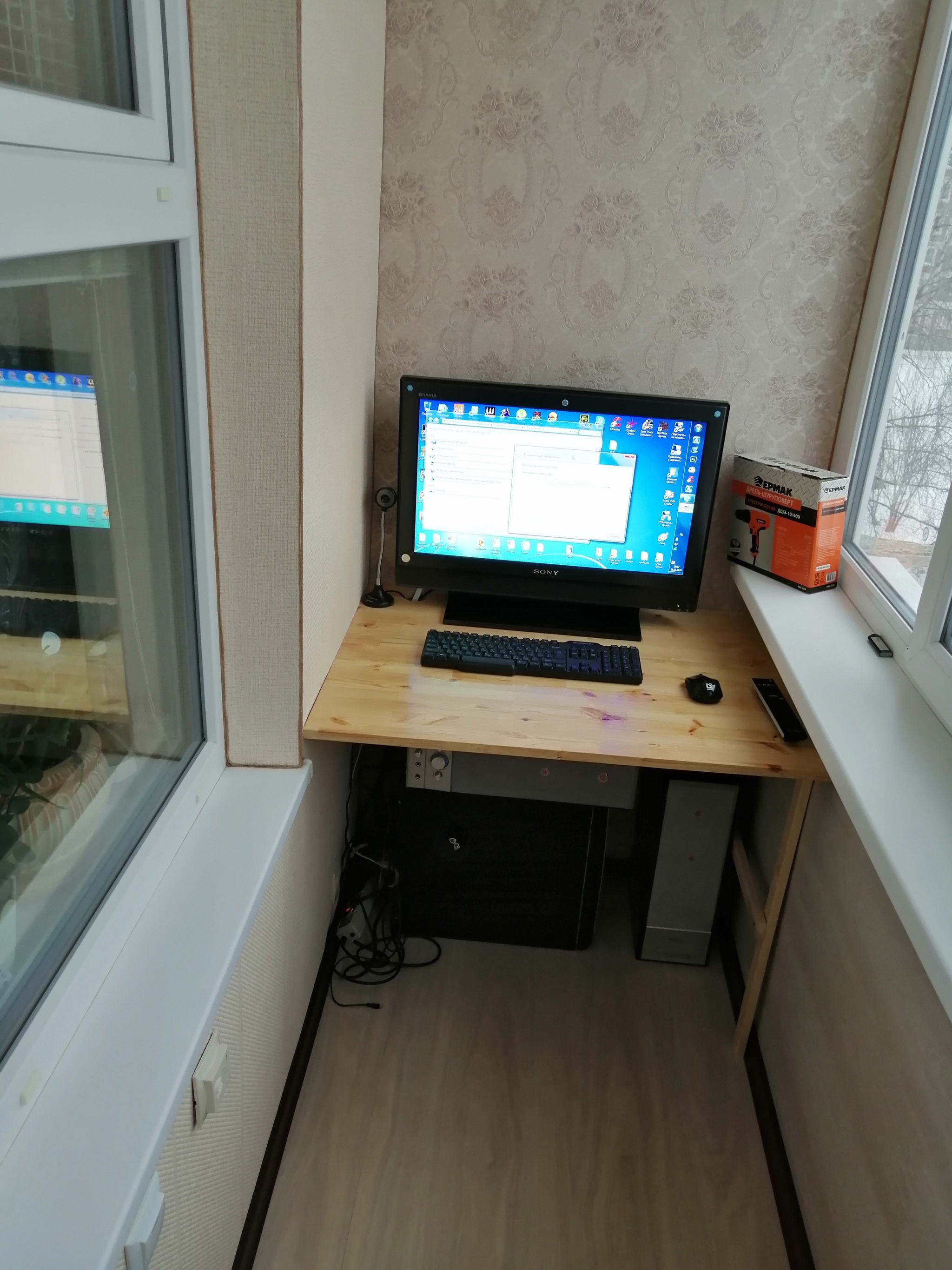 Работать удобно. Из минусов могу отметить, что мне как программисту некуда впихнуть второй монитор. Но с одним, в принципе, тоже нормально. Но тут уже сказывается ширина балкона, ничего не поделаешь.