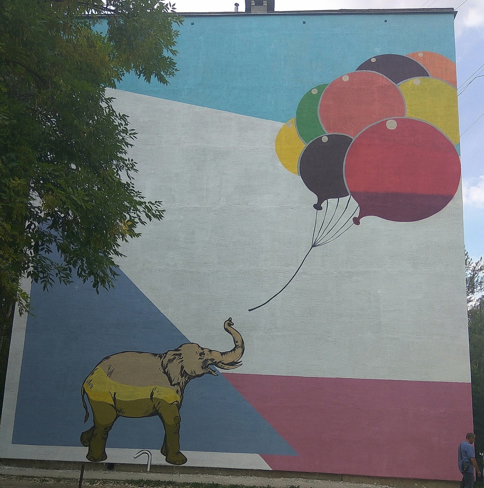Этим летом утепляли пенопластом фасад дома, казалось бы, что необычного можно превнести в такой сугубо строительный процесс, оказалось можно. Теперь просто идёшь мимо с утра и настроение поднимается. И жизнь вроде не такая уж и серая. Художники молодцы.