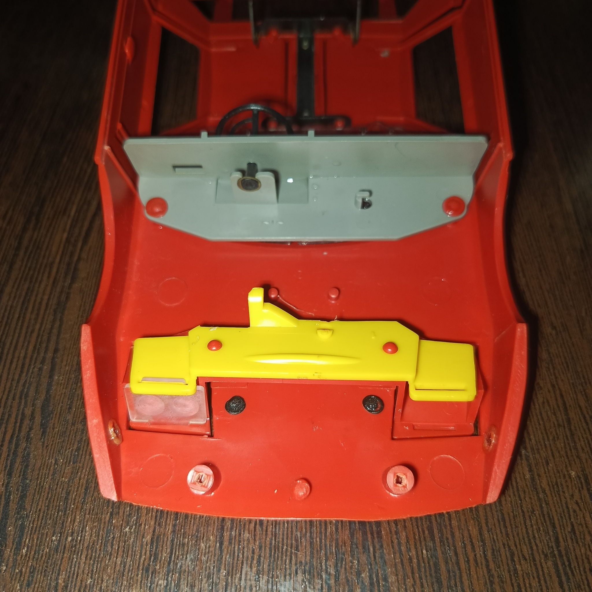 К сожалению, механизм сломан и составляющие его детали утрачены. У меня есть сами фары и пружина, удерживающая их в открытом положении.