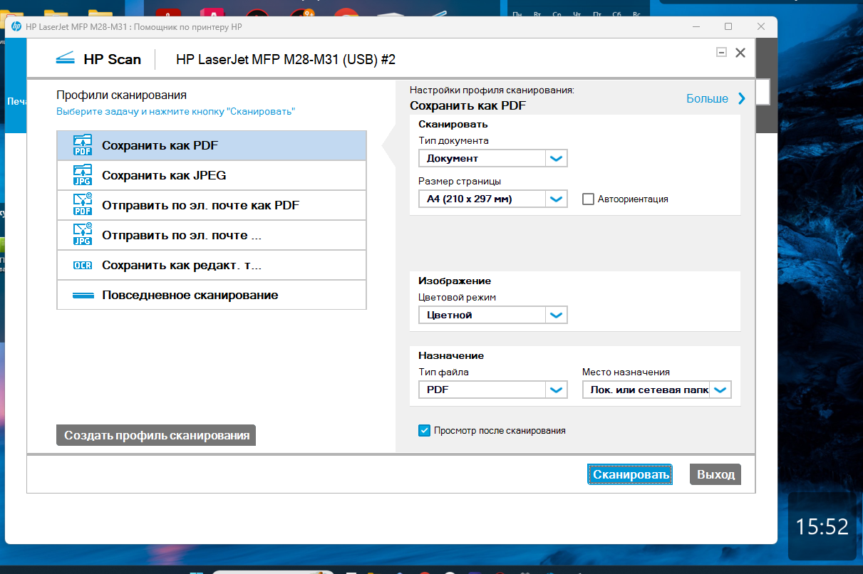 но в утилите HP Scan просто не отображается результат сканирования, окно сканирования просто закрывается без каких-либо результатов.