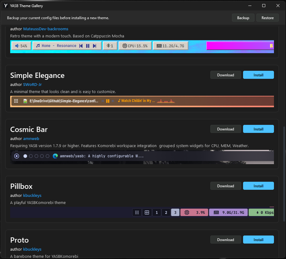 Благодаря модульной структуре YASB позволяет настроить панель под свои нужды: