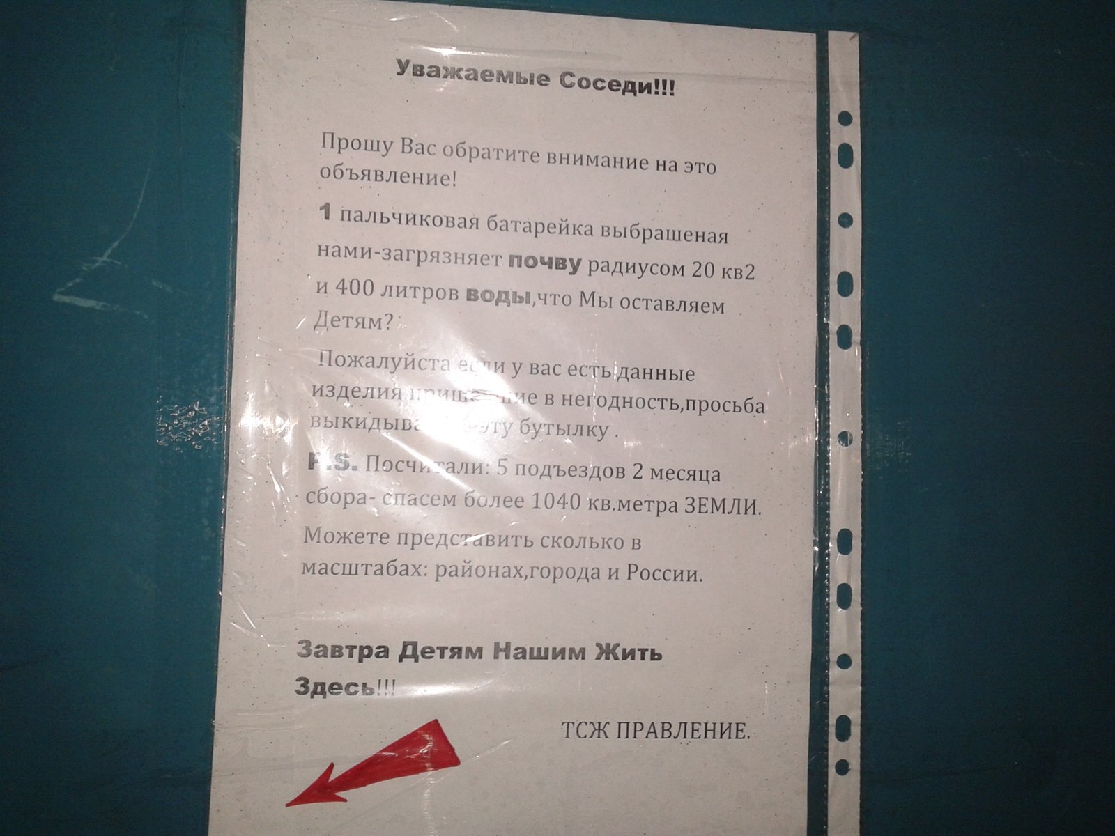 В Краснодаре в подъездах появились бутылки, в которые можно кидать использованные батарейки.