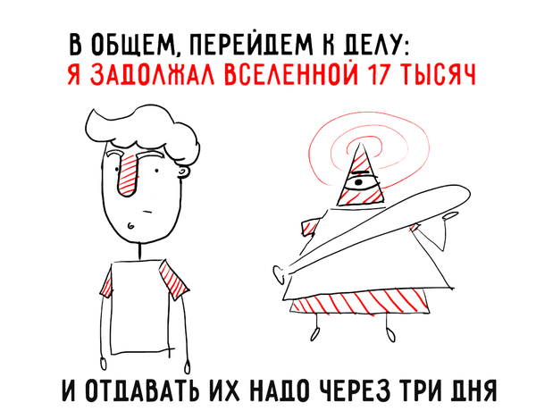 Проект называется "Утиная благотворительность". @azzyild утверждал, что задолжал Вселенной 17 тысяч рублей. И предложил очень оригинальную схему возврата своего долга.