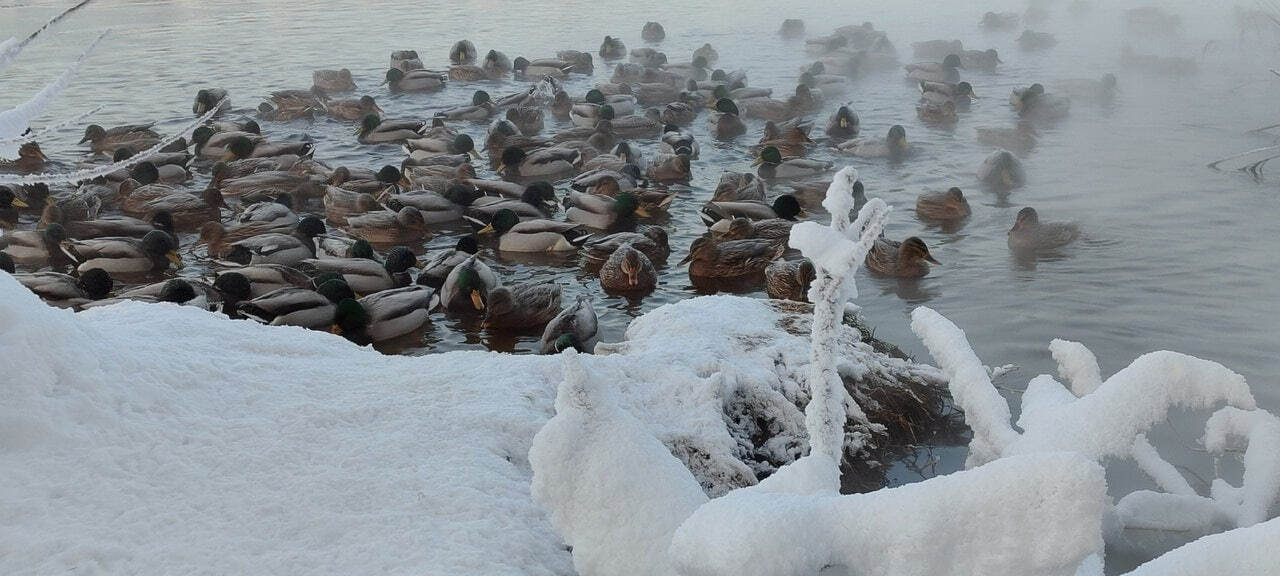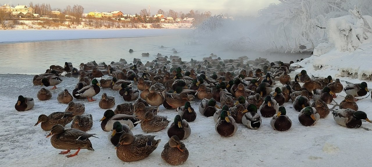 8 1TWISTER3 Утиное джакузи 1 год назад Несколько дней назад, в самые сильные морозы(около -30 градусов), стая уток облюбовала место на Волге, где идет теплый сток воды. Место действия - город Тверь. Зима Мороз Дикие утки Тверь Река Волга Ещё 0