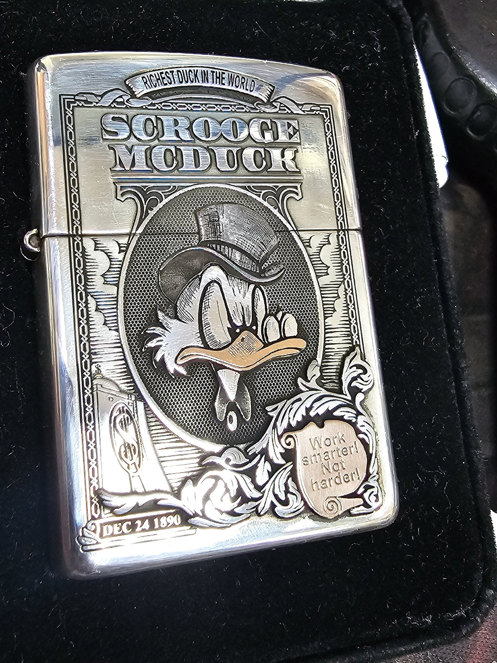 Был у меня такой пост 3 года назад. там я делал Скруджа в медной Zippo с "ЧЁРНЫМ ИНСЕРТОМ" чёрной вставкой