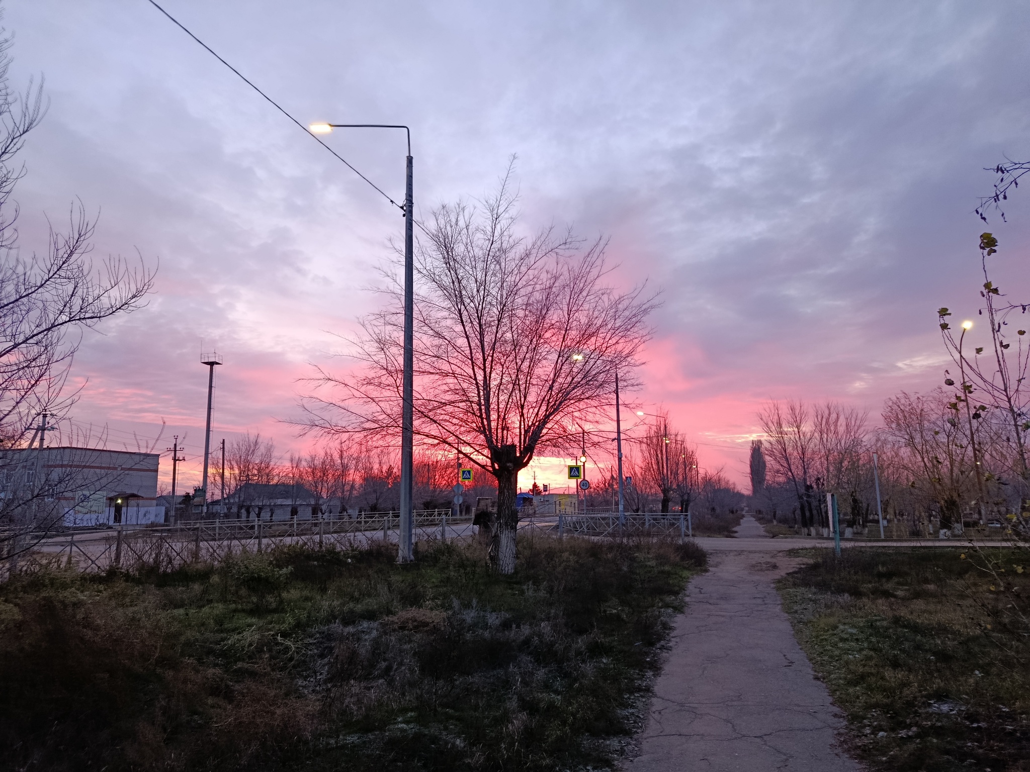 Такое вот прекрасное начало нового дня было на этой недели. Грех было не достать из внутреннего кармана куртки телефон и не снять этот кадр. Ноль процентов обработки - чистая красота природы и немного творений человеческих рук. Красота - она всюду, лишь стоит её увидеть и сфотографировать, как в моём случае.