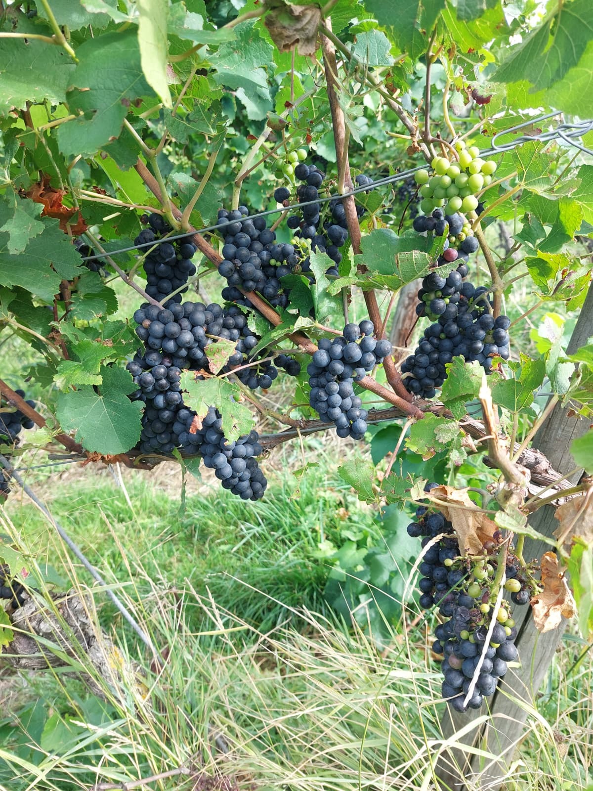 Я в этих наших Англиях тоже себе посадила лозу чёрного винограда, но он выполняет чисто декоративную функцию: красиво декорирует фасад. Кисти формируются мелкие, и даже в октябре он ужасно кислый из-за недостатка солнца и избытка воды. Мы его птицам оставляем, но даже они не соблазняются. Как назло, в этом году лето было жаркое и сухое, а виноград не завязался вообще. Не то что тут, в Баден-Вюртеберге, южный Шварцвальд.