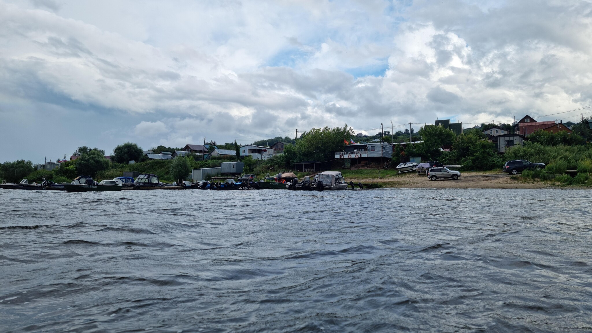 Сегодня, 21 июля 2024 года, меня ждёт настоящий коктейль из сюрпризов: утренняя лужа в палатке, неожиданный разворот течения (впервые за долгое время пришлось грести против него!), шторм, сравнимый по мощи с бурей на Горьковском водохранилище, и вынужденный маневр между тихоходной баржей и скоростным “Метеором”, пытающимися взять меня в "клещи". А завершится день квестом “Найди стоянку”, прохождению которого будут мешать невидимые собаки и нескончаемый дождь. Приготовьтесь к рассказу о борьбе со стихией, незримых опасностях и логистических квестах!