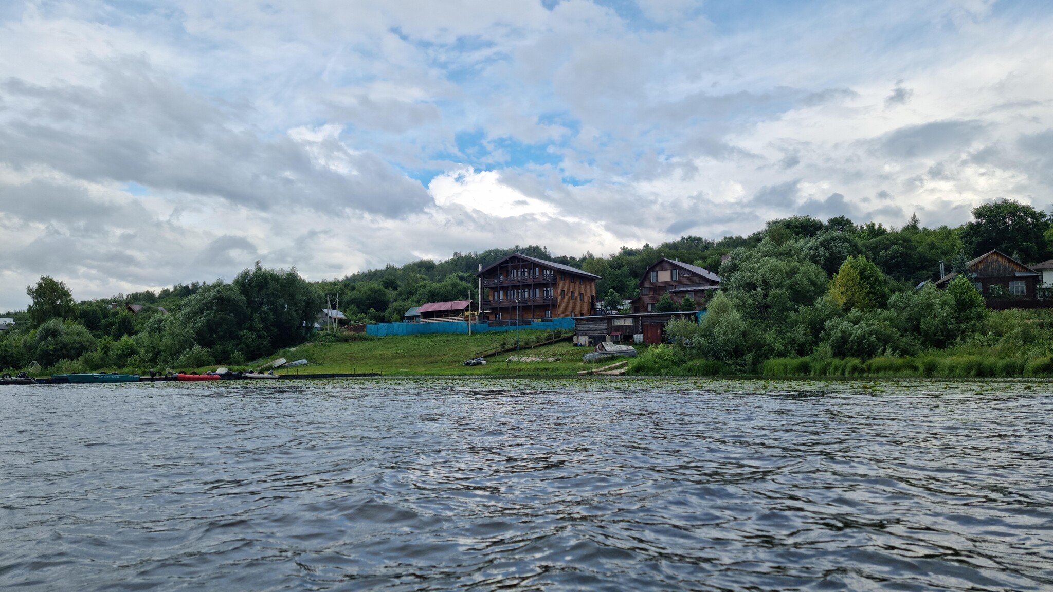 Вымокнув и устав от физических нагрузок, я вскоре достиг его и свернул в правый рукав, укрытый от ветра. Вода успокоилась, и идти стало значительно легче. Справа проплыло село Бармино, около которого стояло множество лодок, пришвартованных у длинной вереницы пирсов.