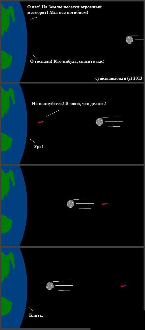 НИКОГО! МЕНЯ!! МЕТЕОРИТ!! БОЛЬШОЙ!! МЕТЕОРИИИТ!!! УБИЛ МЕНЯ!!! НУ ЧТО ТЫ НЕ ПОНИМАЕШЬ!!!