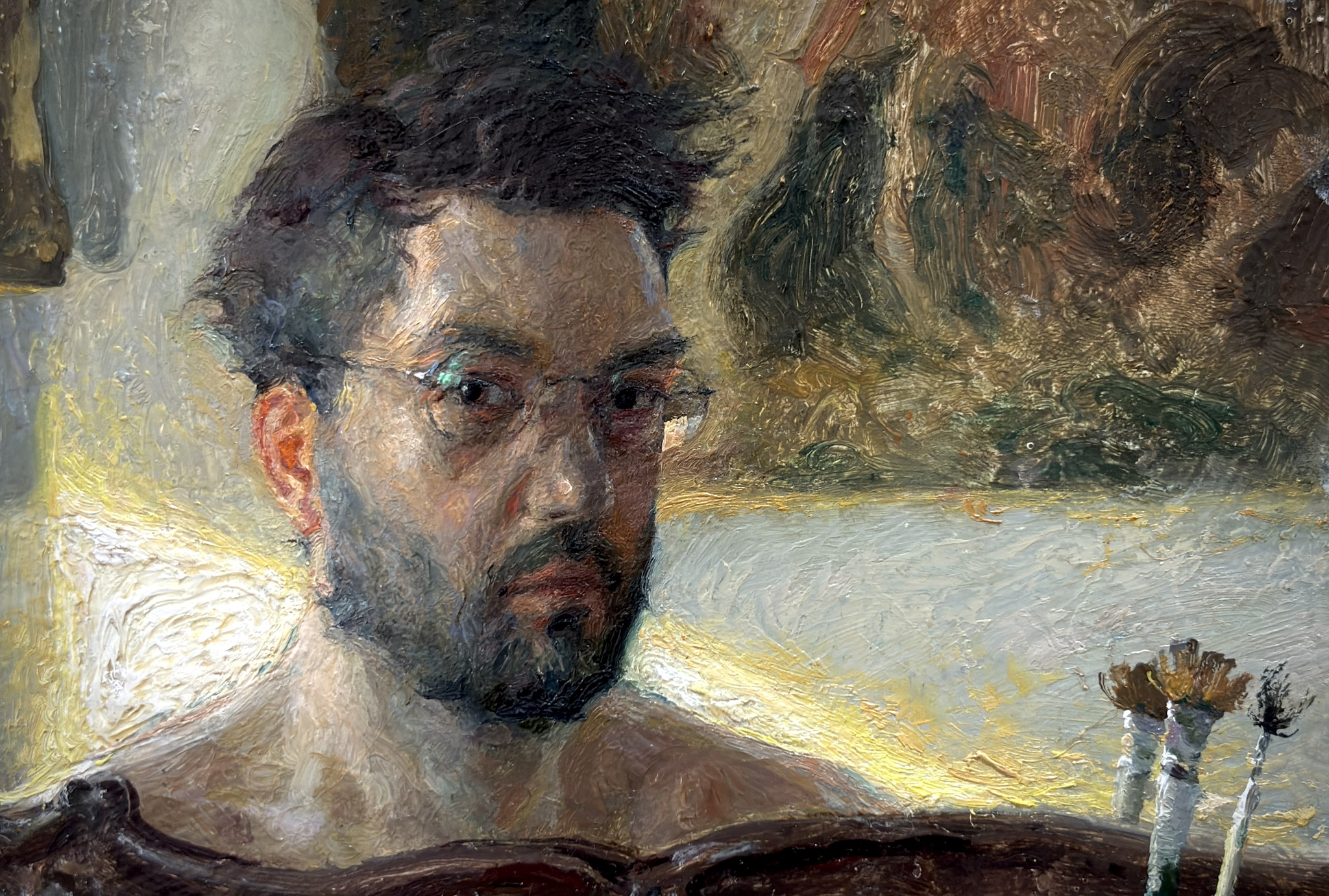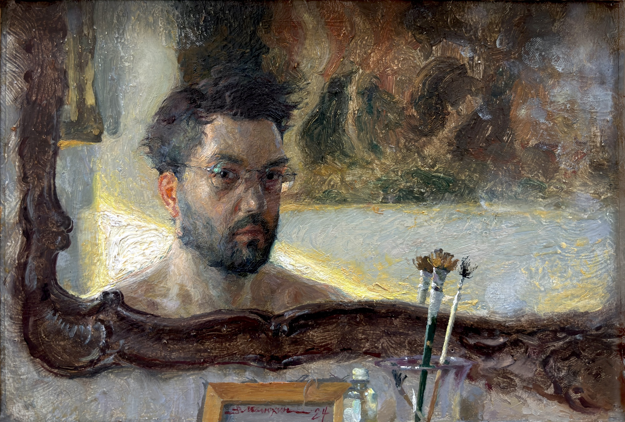«Утро. Автопортрет» 2024. 15х24см. Картон. Масло