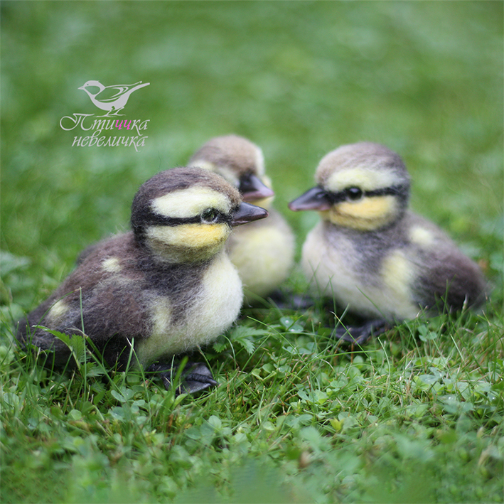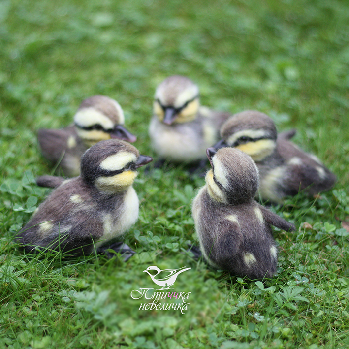 Впервые я валяла утят. Интересно, что у малышей кряквы клювики и лапки не розовые, а тёмные. Да и сами они не просто жёлтенткие, а очень интересной окраски.