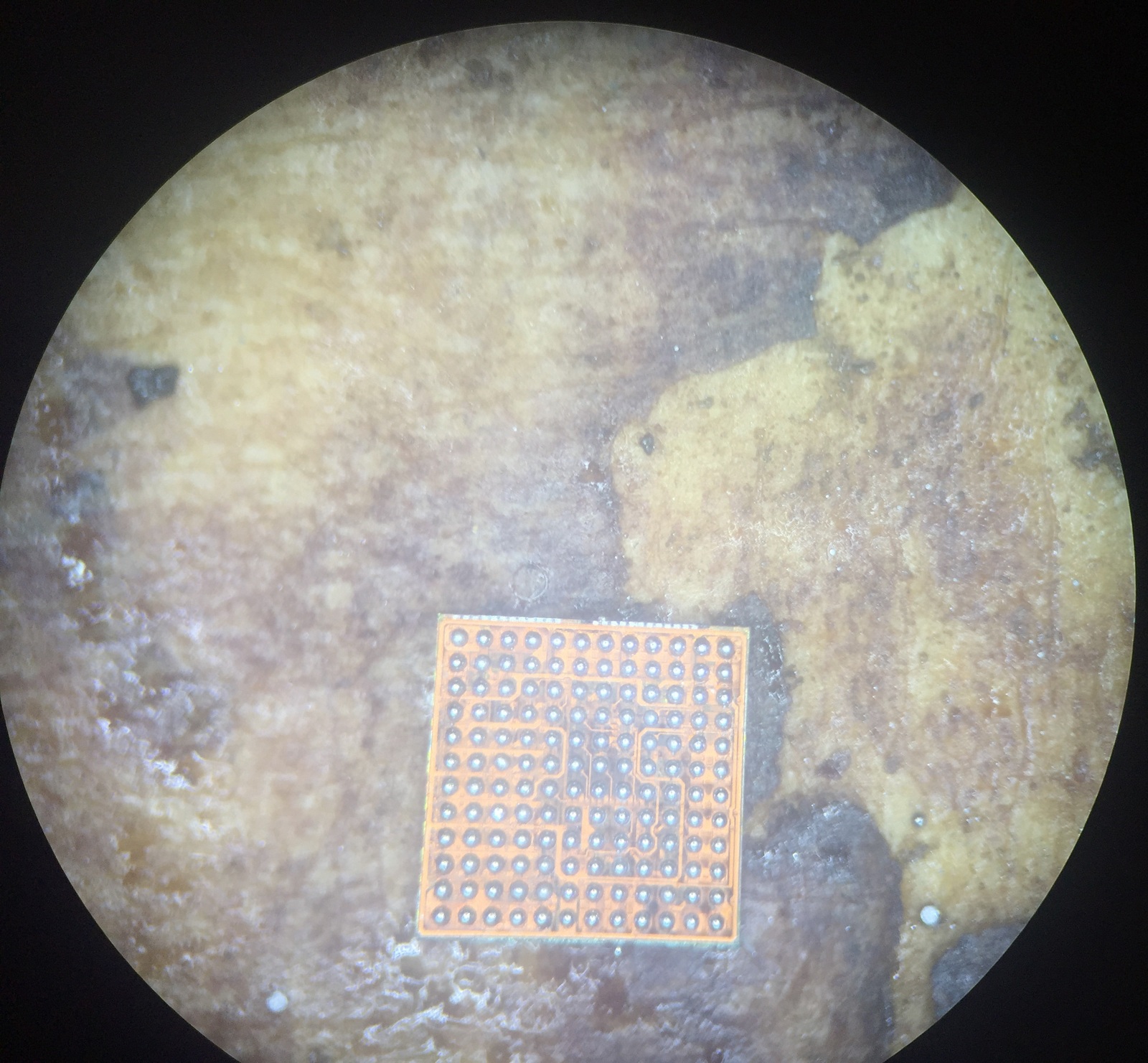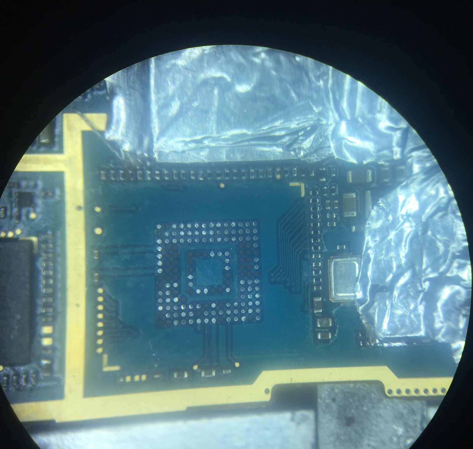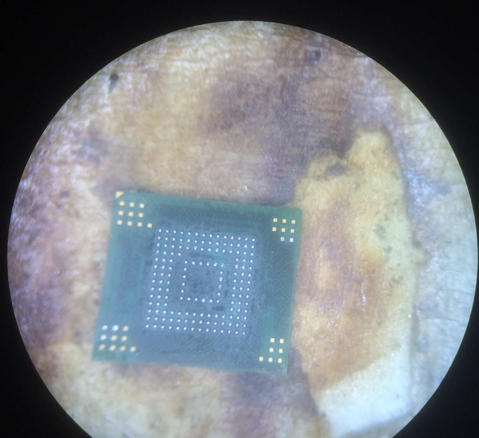 кстати, пропустил фотку микросхемы памяти. очень хорошо, что у памяти в телефонах всего несколько видов рисунков. Если бы извращались как контроллеры питания и процессоры - то ремонтники просто разорились бы на колодках, в которые вставляют микросхемы, для более удобной работы с программаторами.