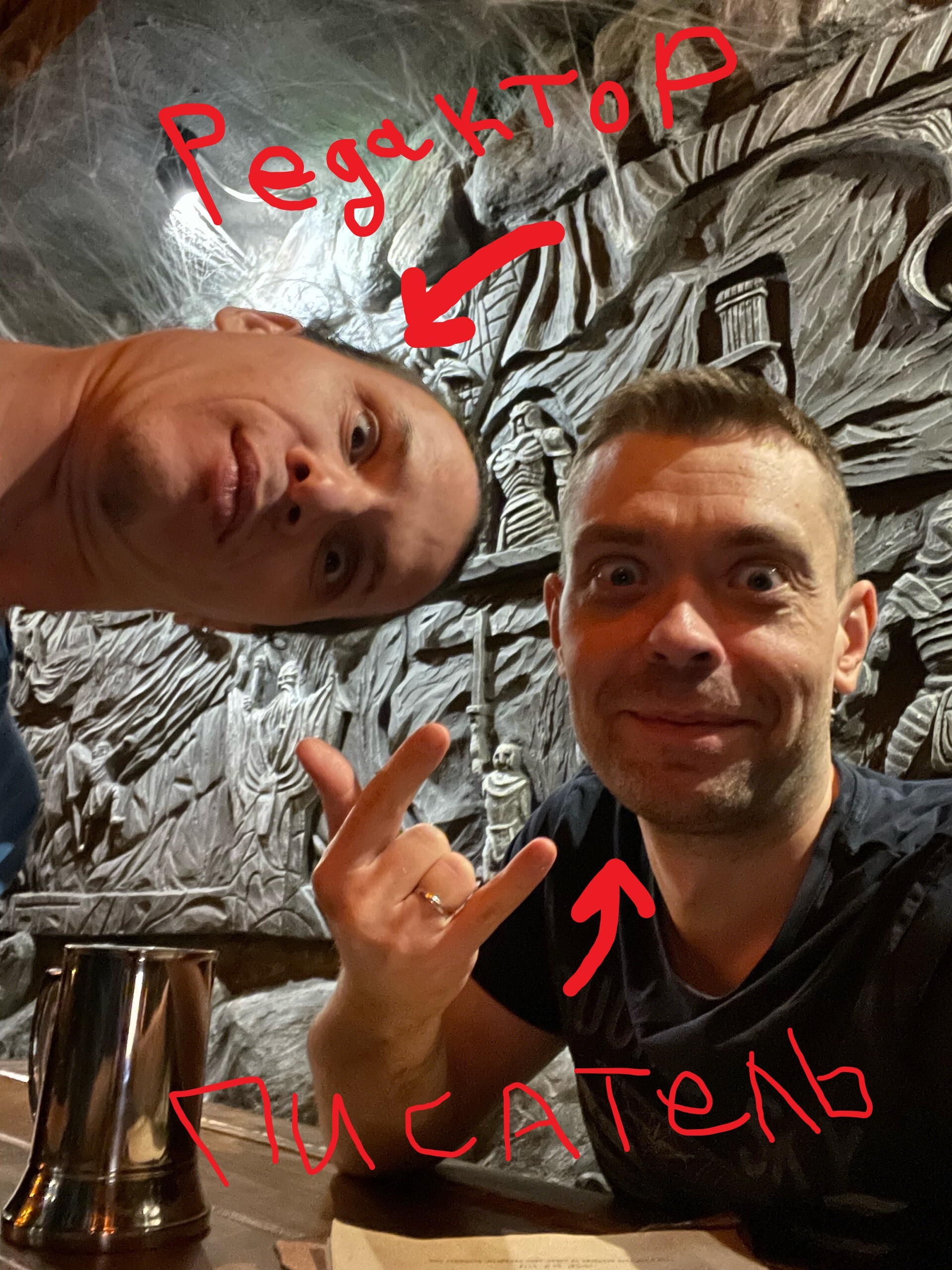 На фото ниже писатель и его редактор пропивают гонорар и показывают диплом, а старичок одобряет отредактированные тексты: