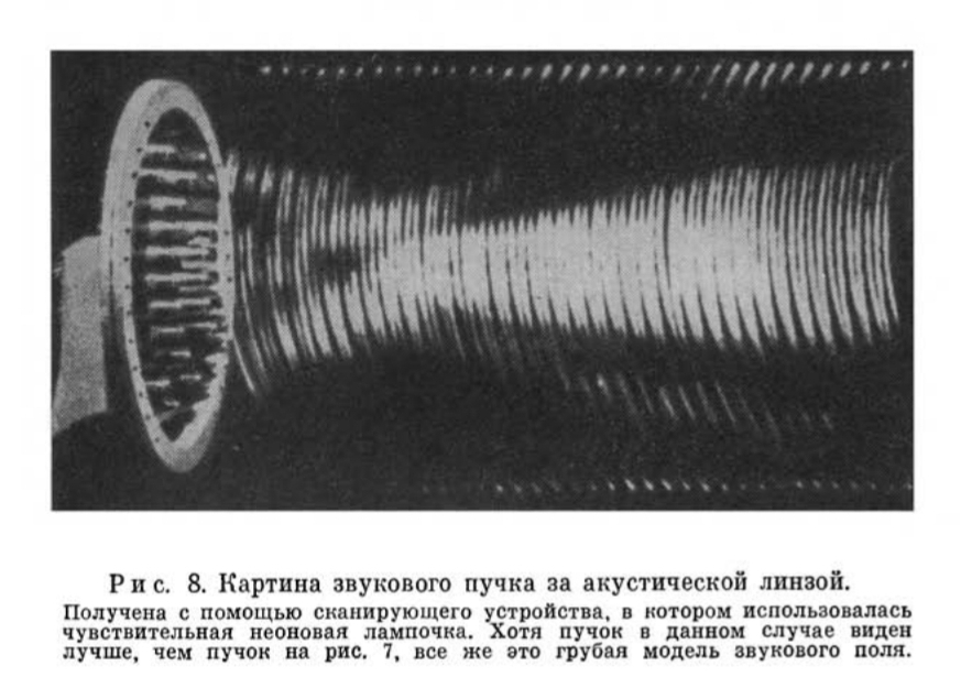 Интересный в ней описан способ, как до появления компьютеров фотографировали звуковое поле: микрофон совмещен с лампочкой и их перемещают, сканируя нужную область. Звук громче-лампочка горит ярче. Все это фиксирует фотокамера с открытым затвором. Получается что-то вроде такого: