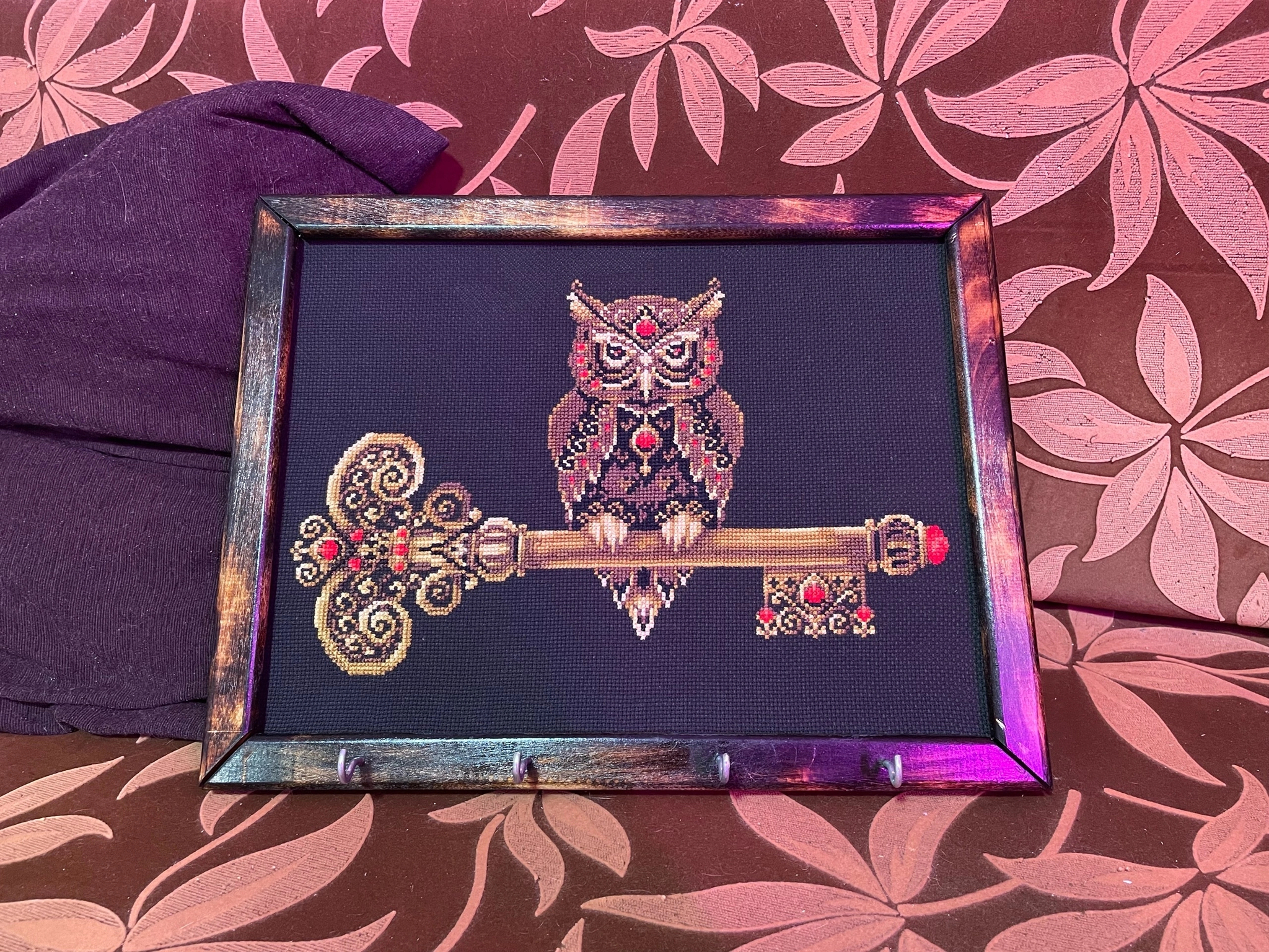 Я решила, что вышью, оформлю в ключницу и подарю ей) но в декабре проболталась и она попросила просто набор, потому что ей нравится вышивать самой)