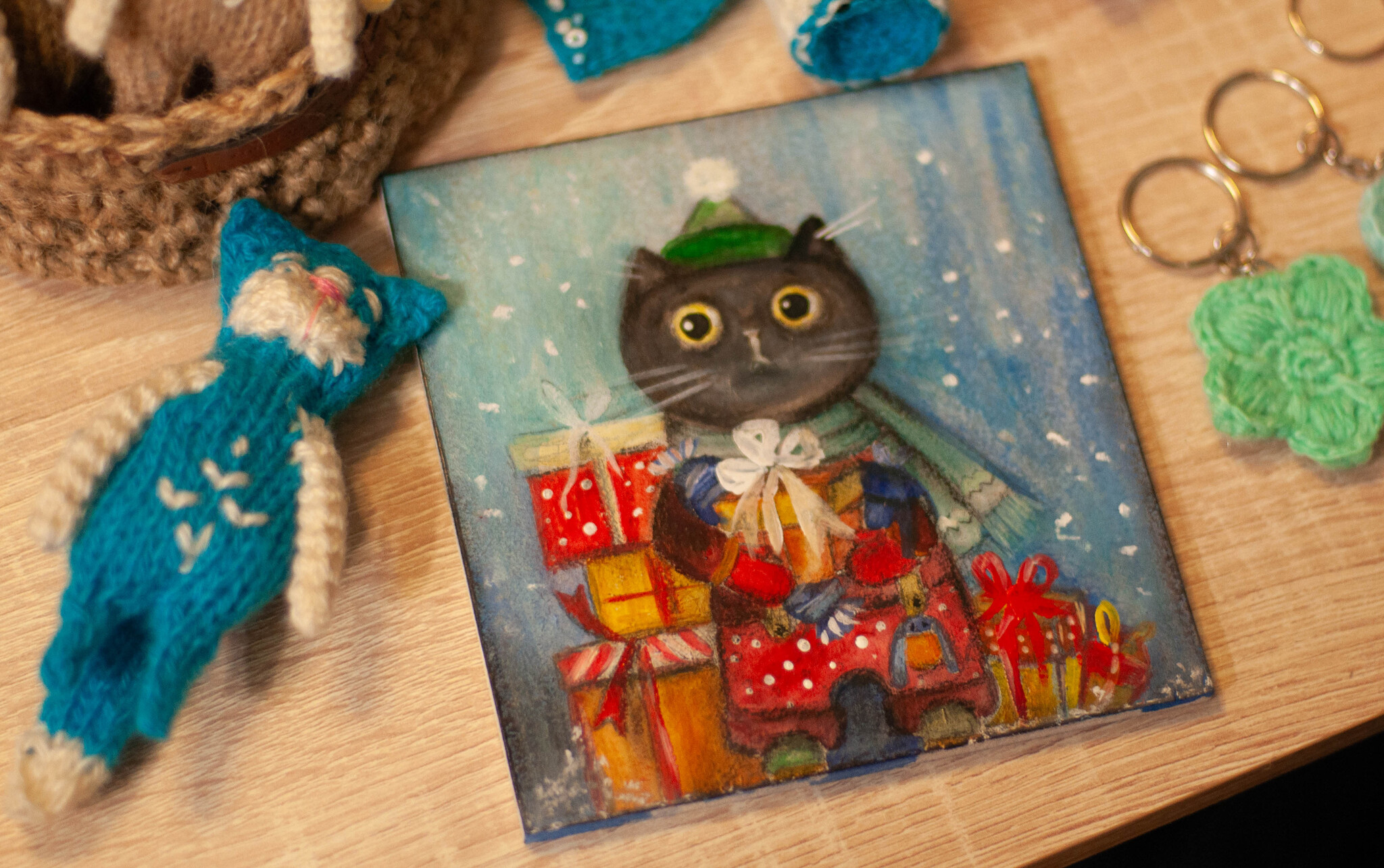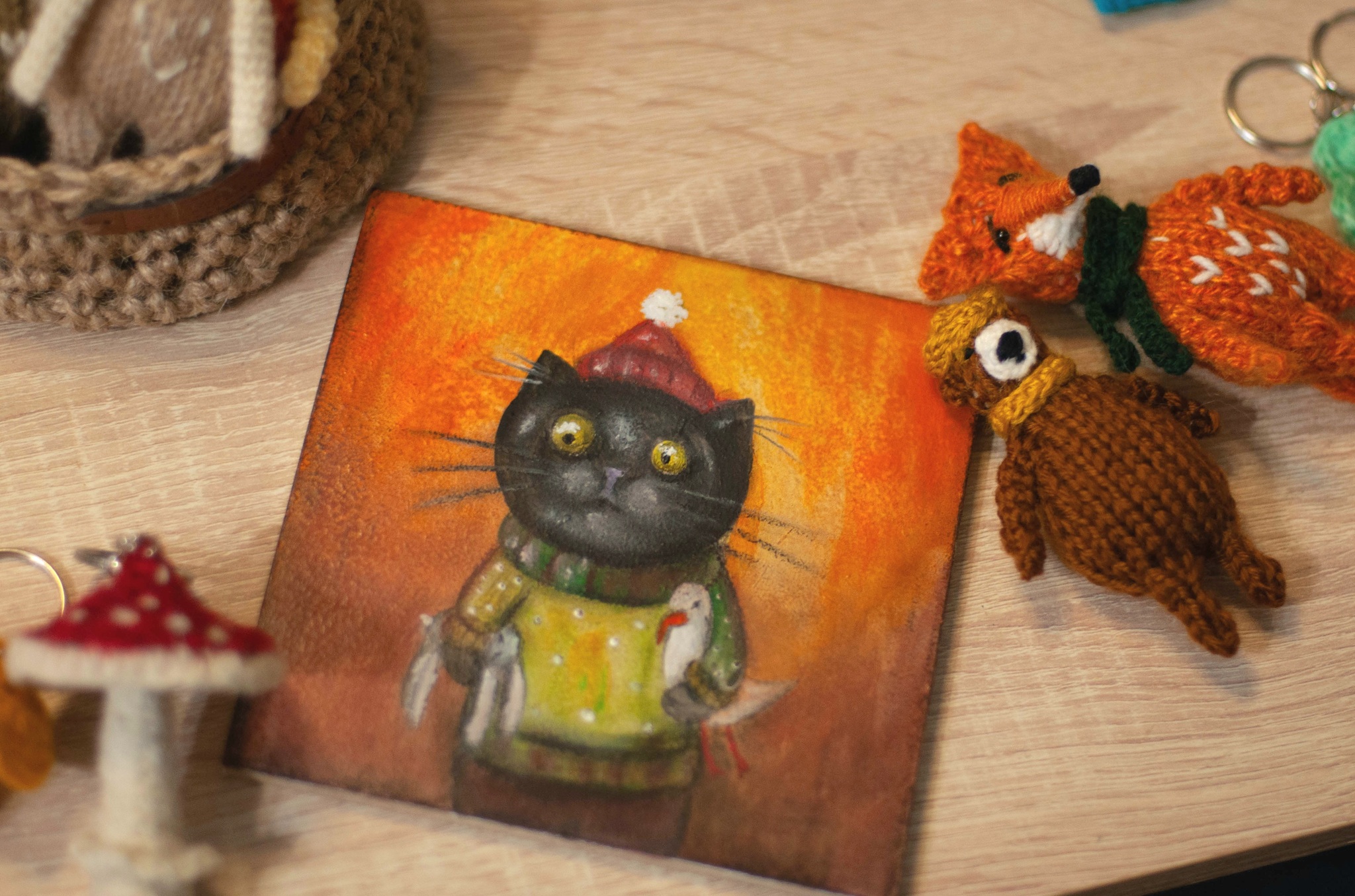 Осень располагает к творчеству, и в этот раз оно многогранно. Практически всё, чем я занимаюсь в данный момент: рисую, вяжу и создаю всякие душевные сувениры. Бывало и ещё больше разного творчества: вышивка, лепка из глины и т.п. Но пока основное на фото. Не люблю создавать одно и то же, и мой подход — постоянное развитие и движение вперёд.