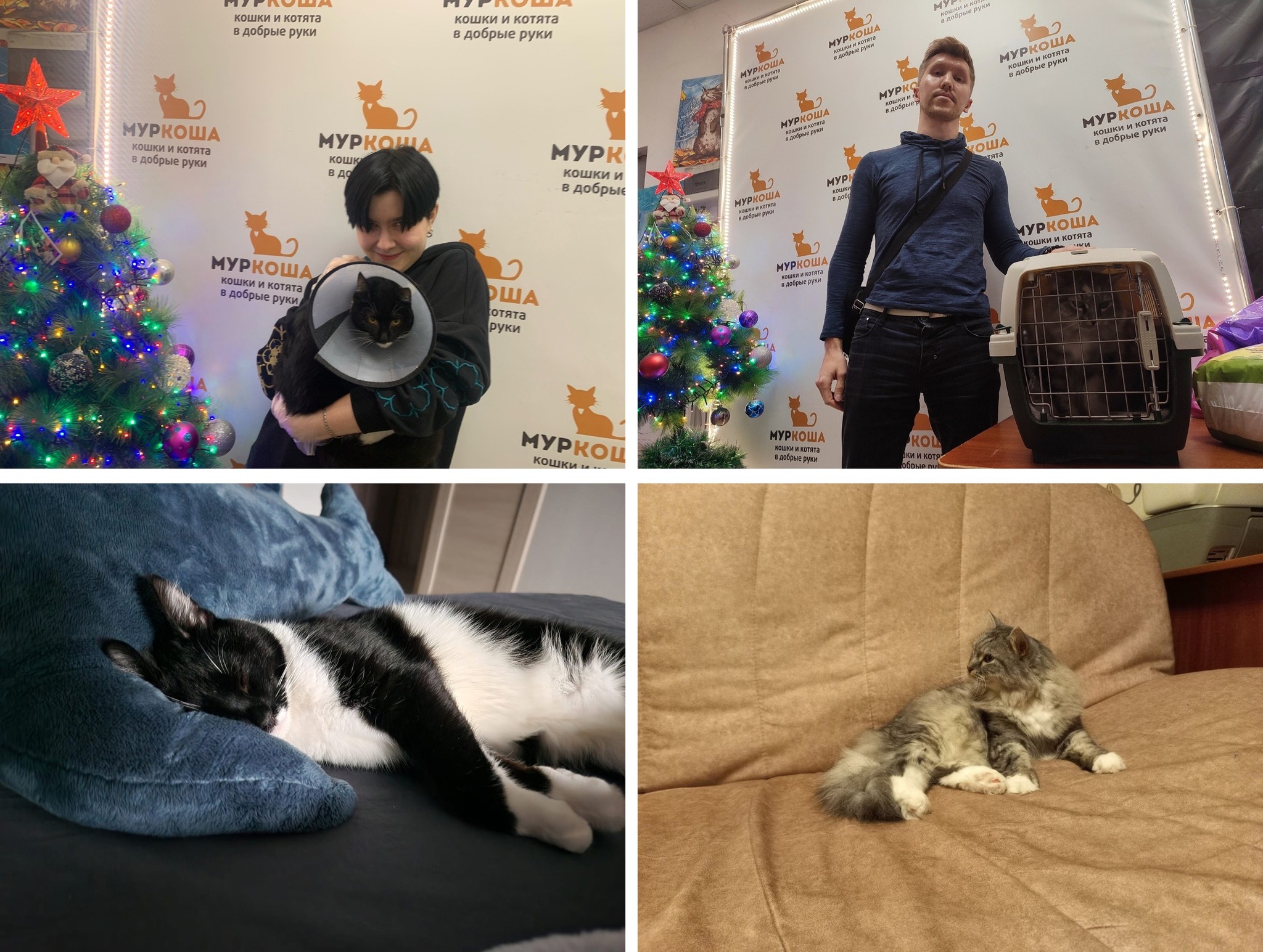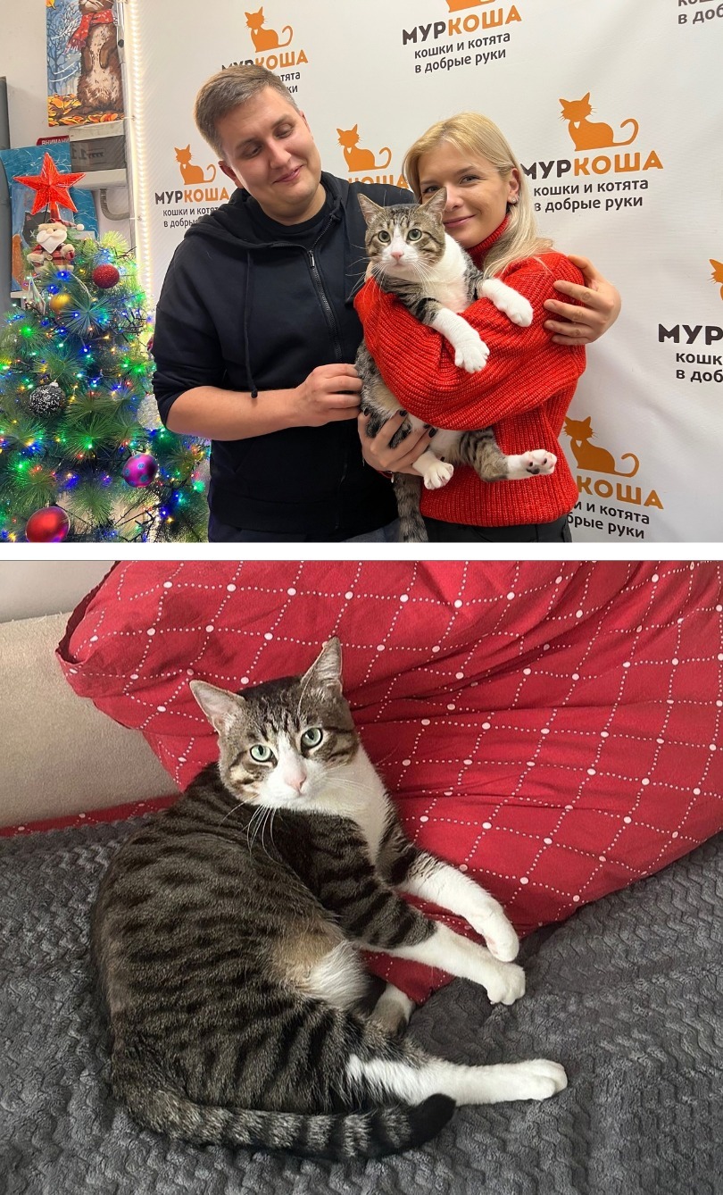Прекрасные перемены произошли и у рыжей 2-летней лапули Сигмы, и у добродушного 5-летнего полосатика Муравчика: они нашли своих любящих и заботливых людей и свои собственные домашние перинки!