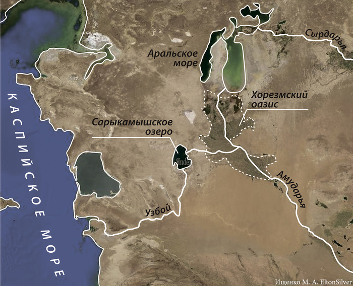 Итак, продолжаю цикл объёмных статей, посвященных гидрографии среднеазиатского региона. Первая часть, «Аральское море пересыхало в Средние века», была посвящена свидетельствам и исследованиям, на основе которых можно сделать вывод о том, что Аральское море достаточно сильно пересыхало в период XIII – XV вв. Были рассмотрены некоторые тенденции Каспия, упомянута сильная изменчивость русла Амударьи и, главное, был рассмотрен факт, что Амударья могла частично или полностью направлять свои воды в Сарыкамышскую котловину, а эти воды в свою очередь могли доходить до Каспия! Интересно — каким образом?