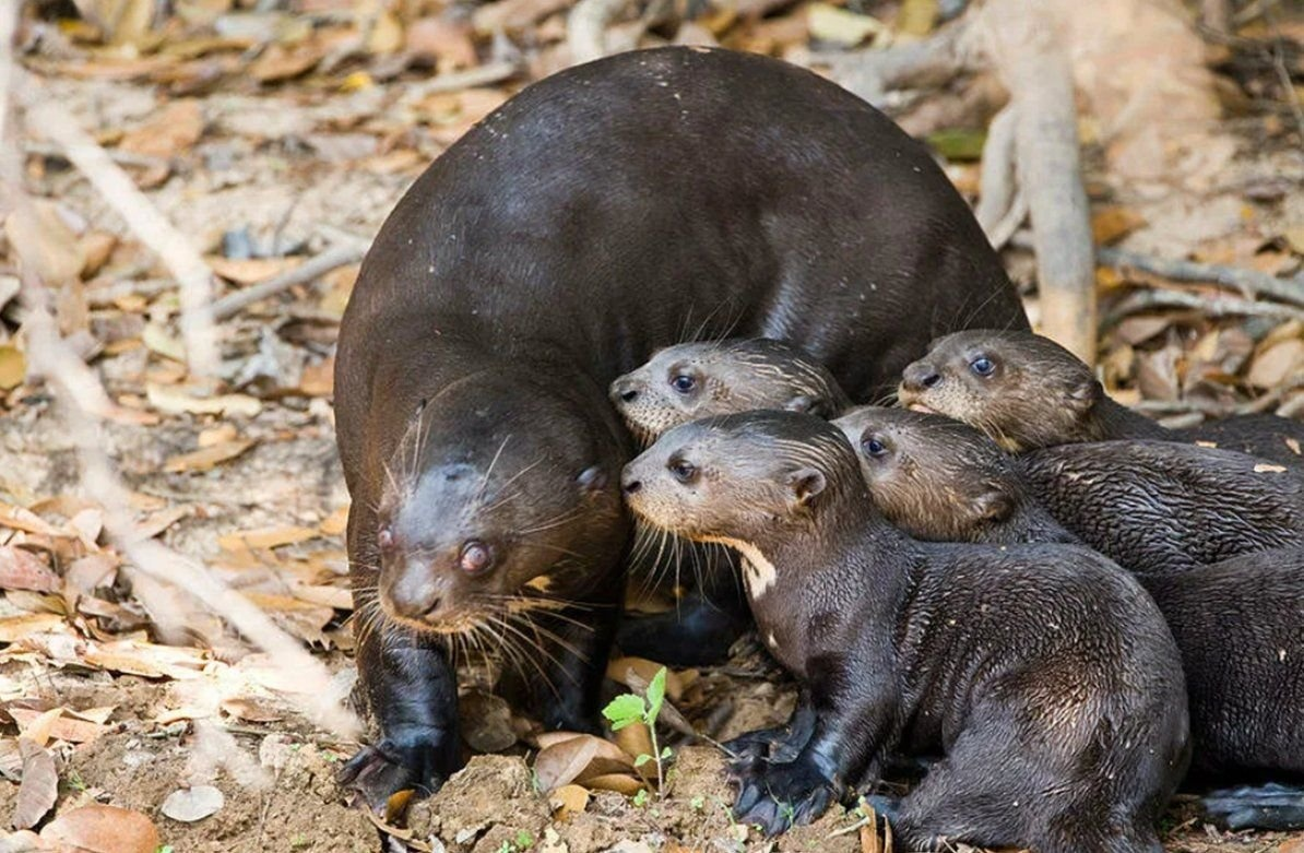 Сложная социальная структура привела к тому, что в группе размножается только доминирующая пара, а остальные члены совместно заботятся о потомстве (да, снова кин-отбор на марше). Размножаться гигантские выдры могут круглый год, но чаще всего это происходит в засушливый период, когда вода в реках опускается до минимального уровня и угрожает затопить или обрушить нору.