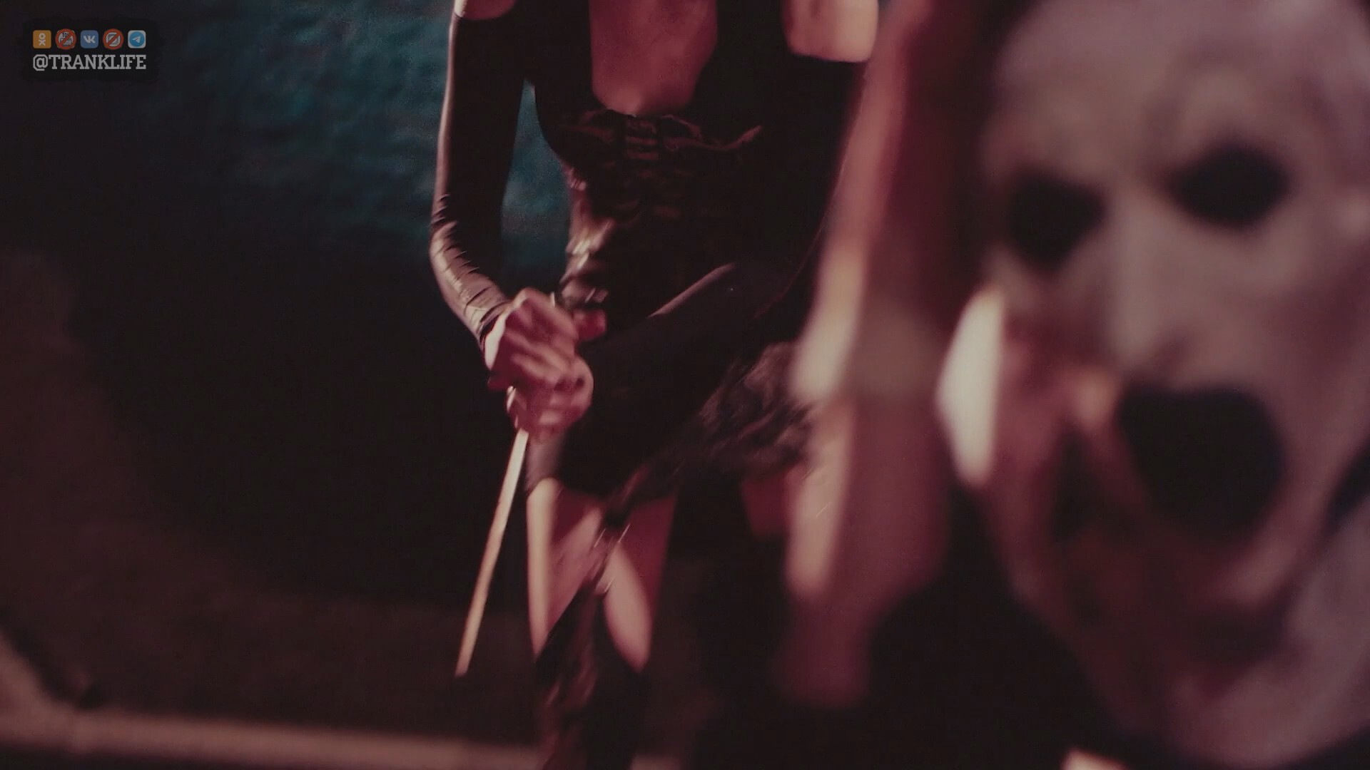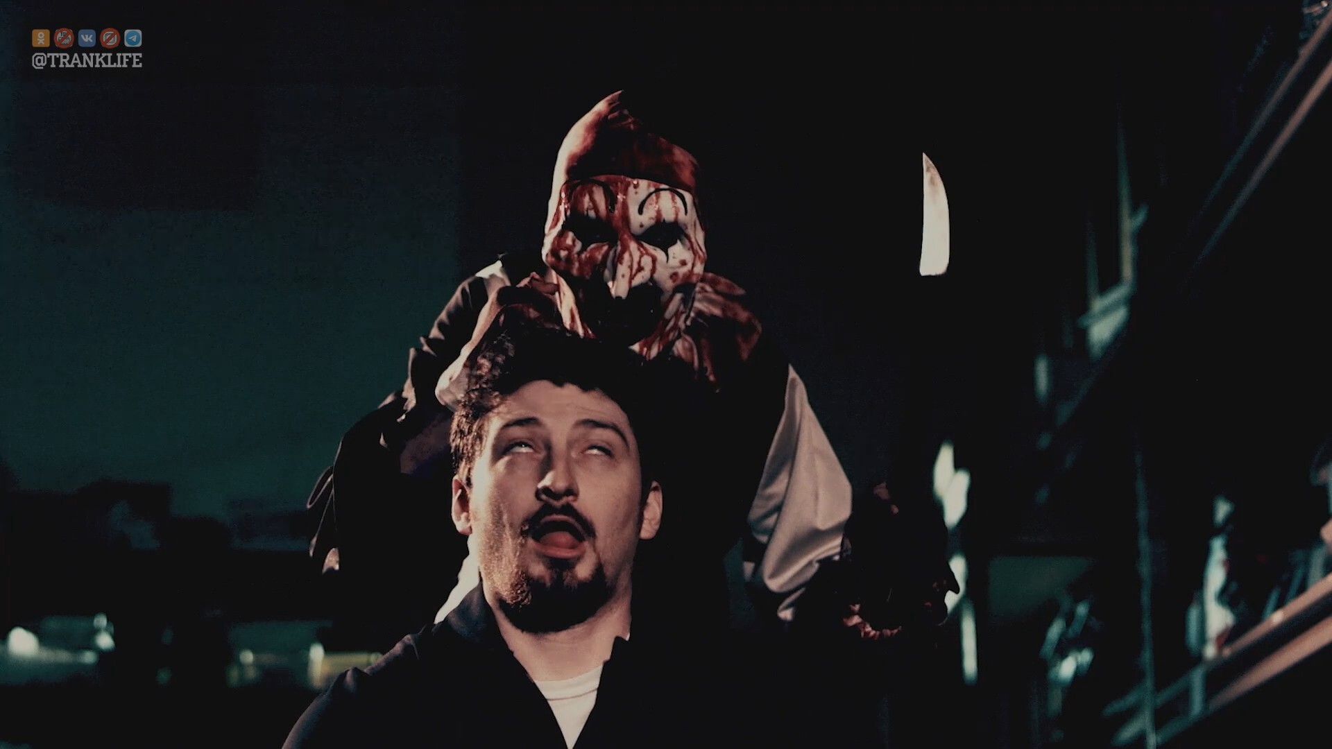 Ну и вот, в местной шаурмечной, у них и происходит знакомство с Ужасающим Клоунеско. И пожалуй в этой локации, и происходит единственная - действительно хорошая сцена - когда раскрепощённая ягермейстером Блондинка - делает хамоватое селфи, с главным злодеем франшизы, попутно допуская унизительные манипуляции с его напомаженным е*алом. Вообще - это могло бы стать годной изюминкой данной кровошизы, если бы всю дорогу Главный Злодей, параллельно с устраиваемой им мясорубкой, ещё бы испытывал постоянно - разного рода физический абьюз от своих жертв. Было бы это здорово - было бы это смешно, согласись (?)
