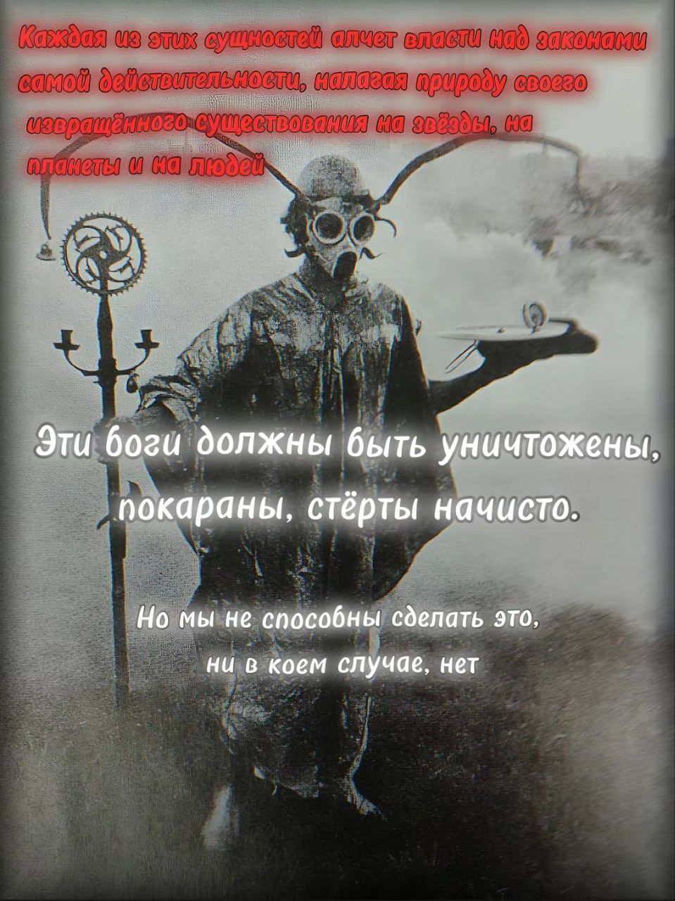 Культ считал, что только так можно избавиться от сущностей, что искажают и уродуют мир, не видя в людях ничего, кроме муравьёв.