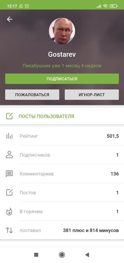 Аккаунту 2 месяца, поставил 380 плюсов и 800 минусов. Ясно, понятно...