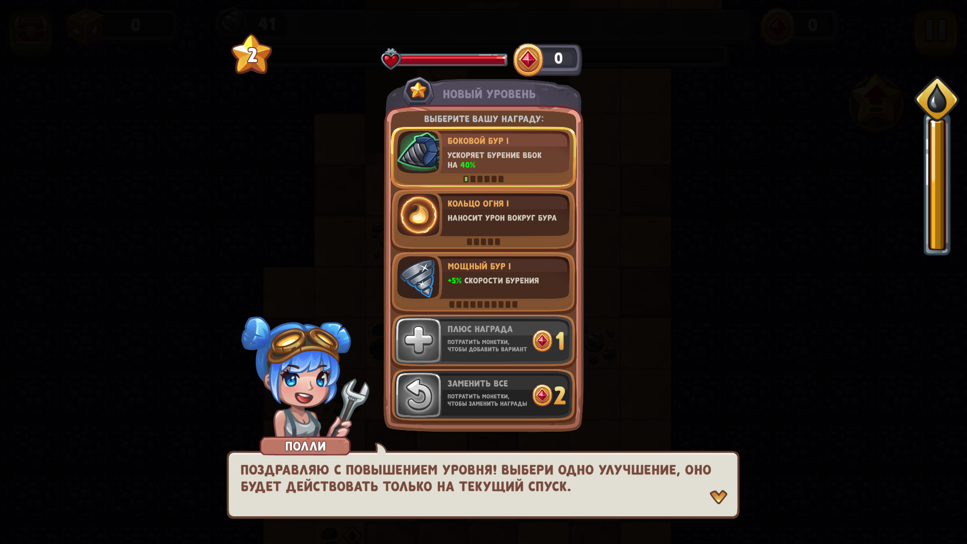 В итоге мы отказались от принудительной рекламы во время спуска, заменили награду за просмотр рекламы на награду за монетки, которые можно найти в земле или получить за просмотр рекламы, но получить сразу 10 монеток.