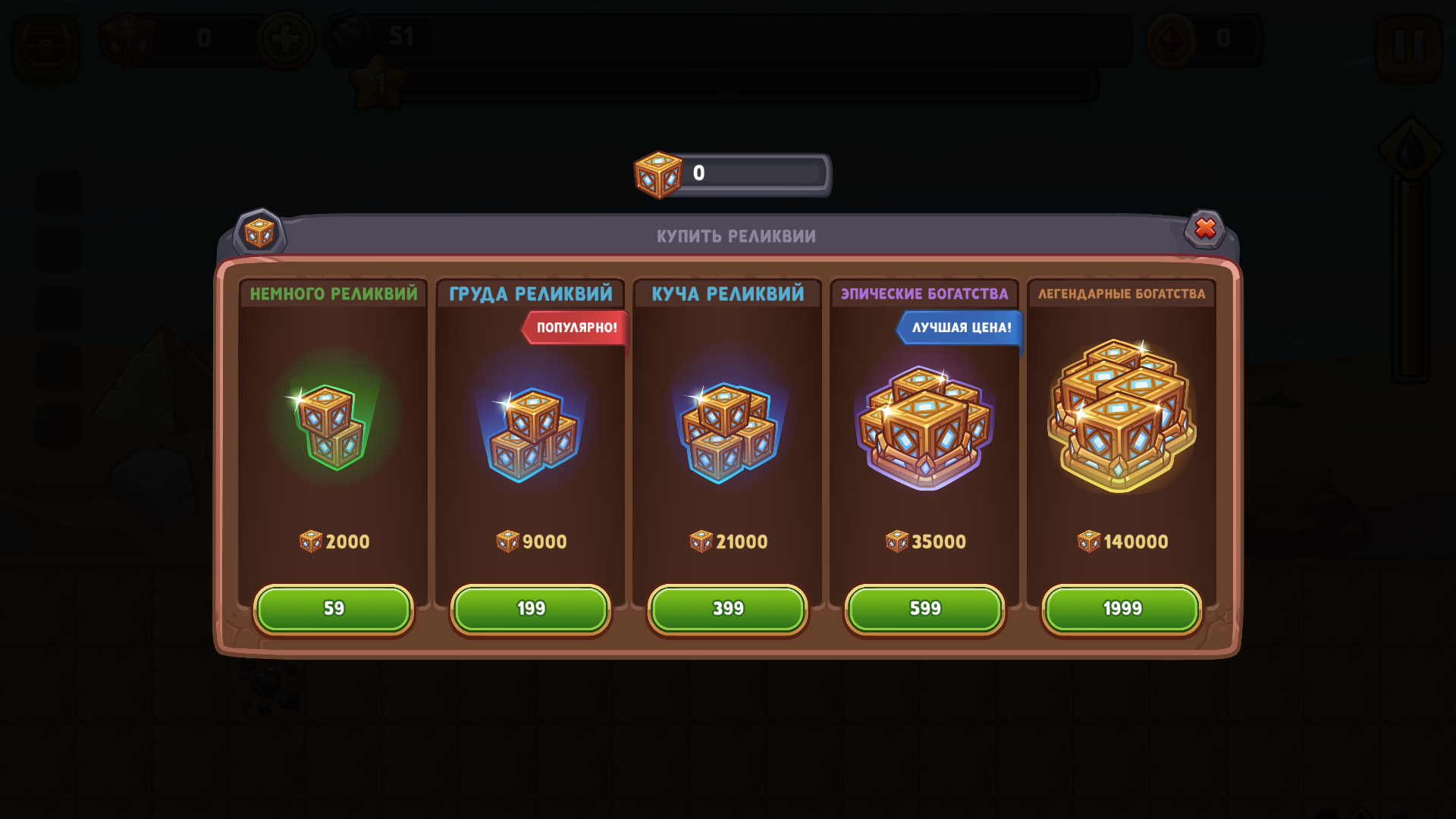 К сожалению или к счастью, сейчас браузерным и мобильным играм не получается выживать только на одной рекламе. Игре нужно уметь что-то продавать, чтобы окупать разработку и быть конкурентной среди других игр. Мы добавили внутриигровую валюту, реликвии, которые можно приобрести за реальные деньги. За эту валюту можно купить облики, дающие необычные свойства. Но, эту валюту также можно получить и в самой игре. Она выпадает из сундуков, и прямо сейчас у нас в разработке новые способы её получения.