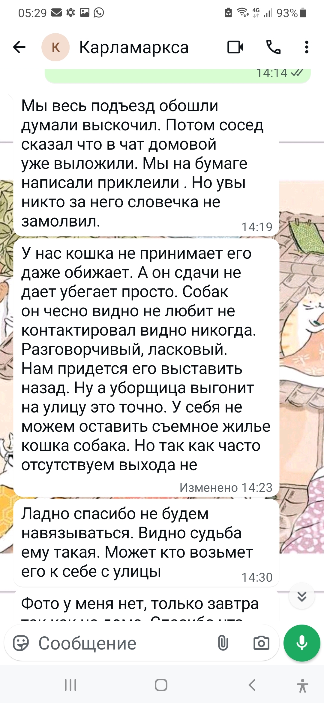 Мы сделали пост о коте, вдруг кто то его ищет.