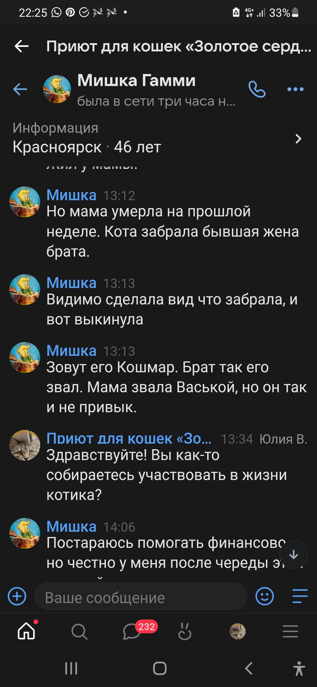 Это просто один из неотвеченных звонков в моем дряхлеющем самсунге... в день звонки исчисляются десятками...порой удивляюсь, каждый день просят забрать кота / кошку/ десяток кошек непонятно откуда столько..несчастных котеек каждый день