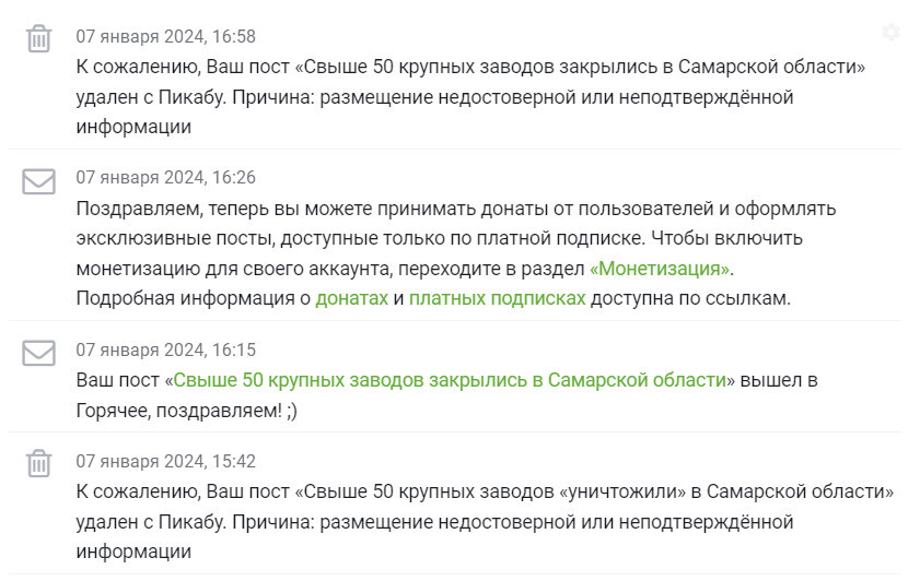 rus.code Уже второй пост удаляет Пикабу 1 год назад Не пойму в чем причина и в чем недостоверная информация. Скриншот Рабочие Завод Самара Уведомление Пикабу Удаление постов на Пикабу Вопрос 1 Ещё 0