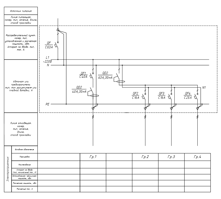 Поскольку УЗО срабатывает только на дифференциальный ток, то встает задача защиты самого УЗО от перегрузки и токов короткого замыкания. На корпусе УЗО указан номинальный ток (25, 40 или 63А, например) – это ток нагрузки, который УЗО может пропускать через себя неограниченное количество времени. Соответственно, выше УЗО должен стоять АВ с номинальным током меньшего или равного значения с УЗО. Если перед УЗО не стоит АВ, то после УЗО должны стоять АВ с суммарным током не больше номинального тока УЗО. Проиллюстрирую на картинке ниже.