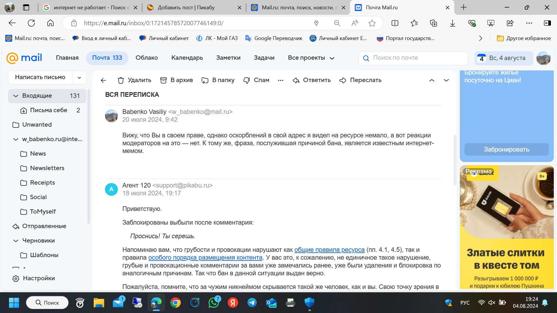 – ссылку на пост или комментарий которые привели к блокировке аккаунта.