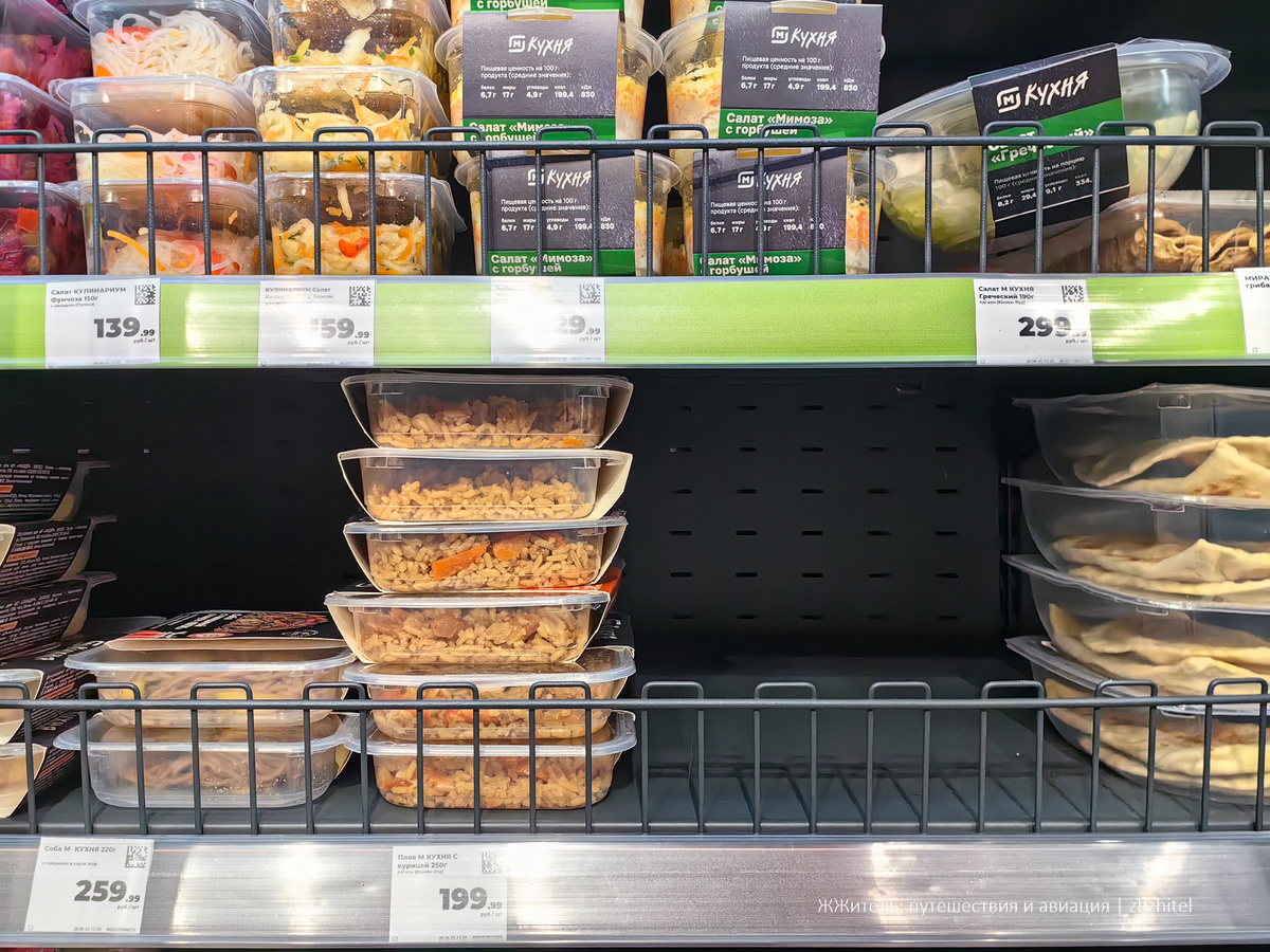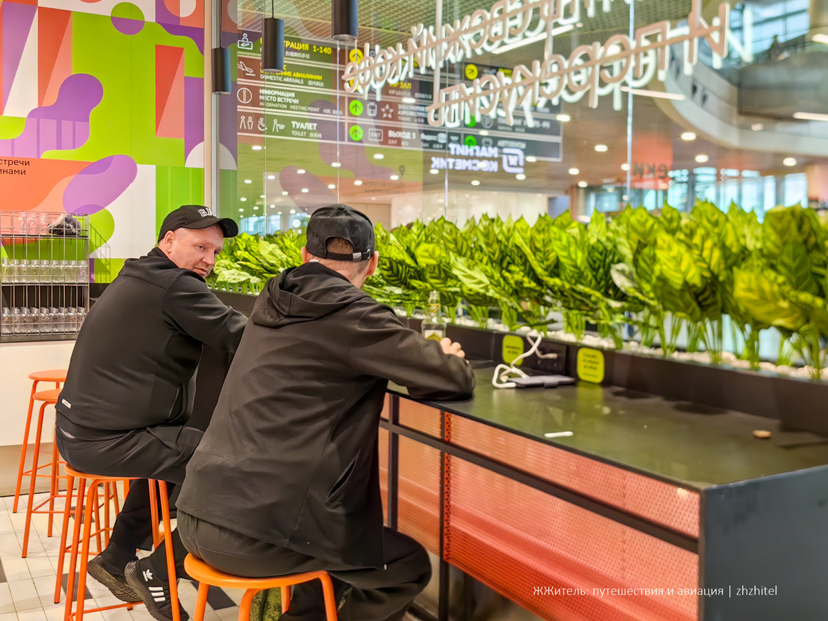 Если проголодались и хотите чего-нибудь посущественнее, можно взять плов за 200 рублей и салат за 140. Прекрасная и бюджетная альтернатива кафе и ресторанам в аэропорту. Не отговариваю обладателей толстых кошельков и золотых карт от посещения ресторанов и квази-дьюти-фри, но теперь есть хорошая альтернатива, а не выбор между «дорого» и «очень дорого».