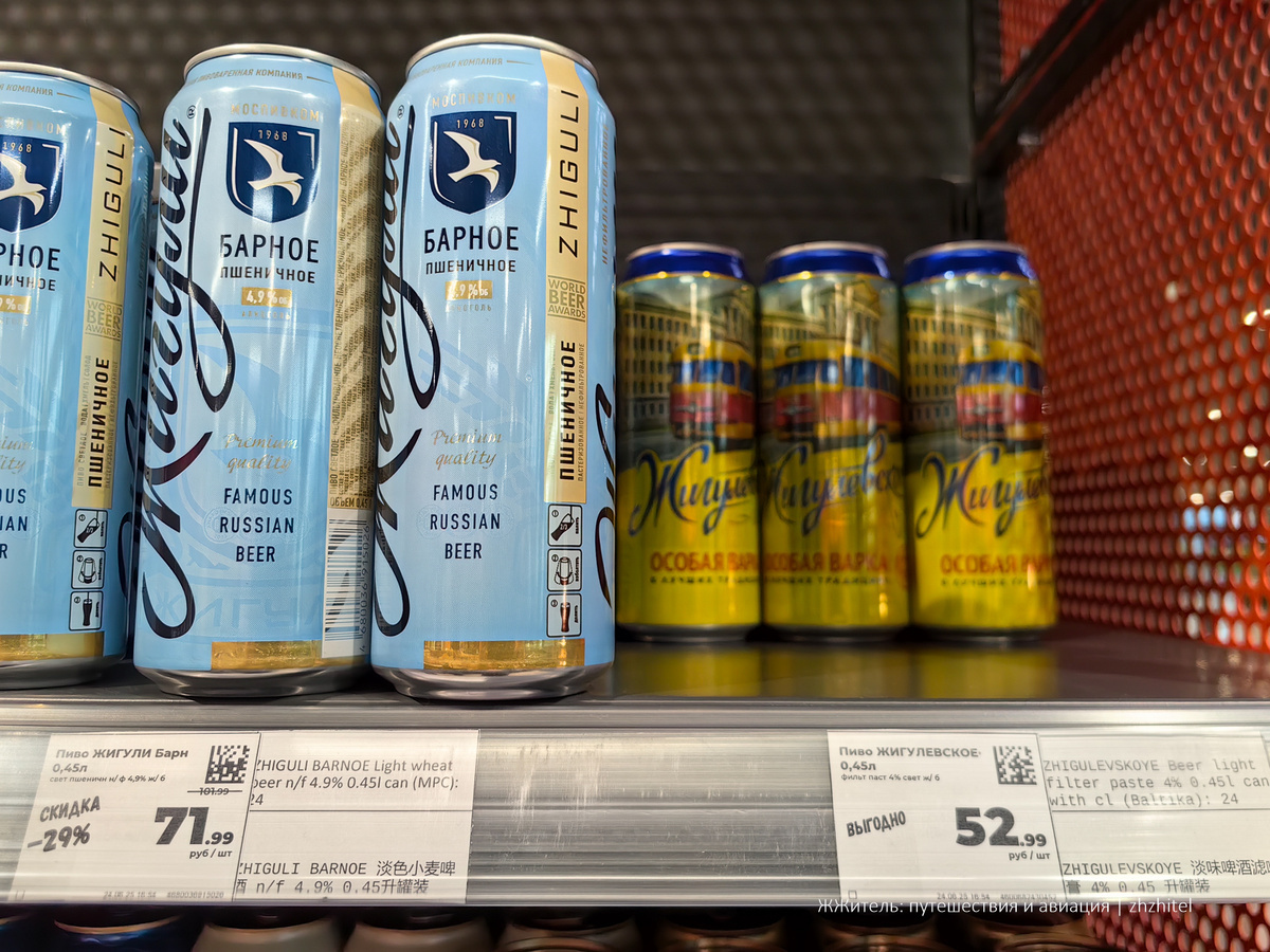 Есть целый стеллаж с пивом. Самое дешевое — 52,99 руб. Как вам такие цены в аэропорту?