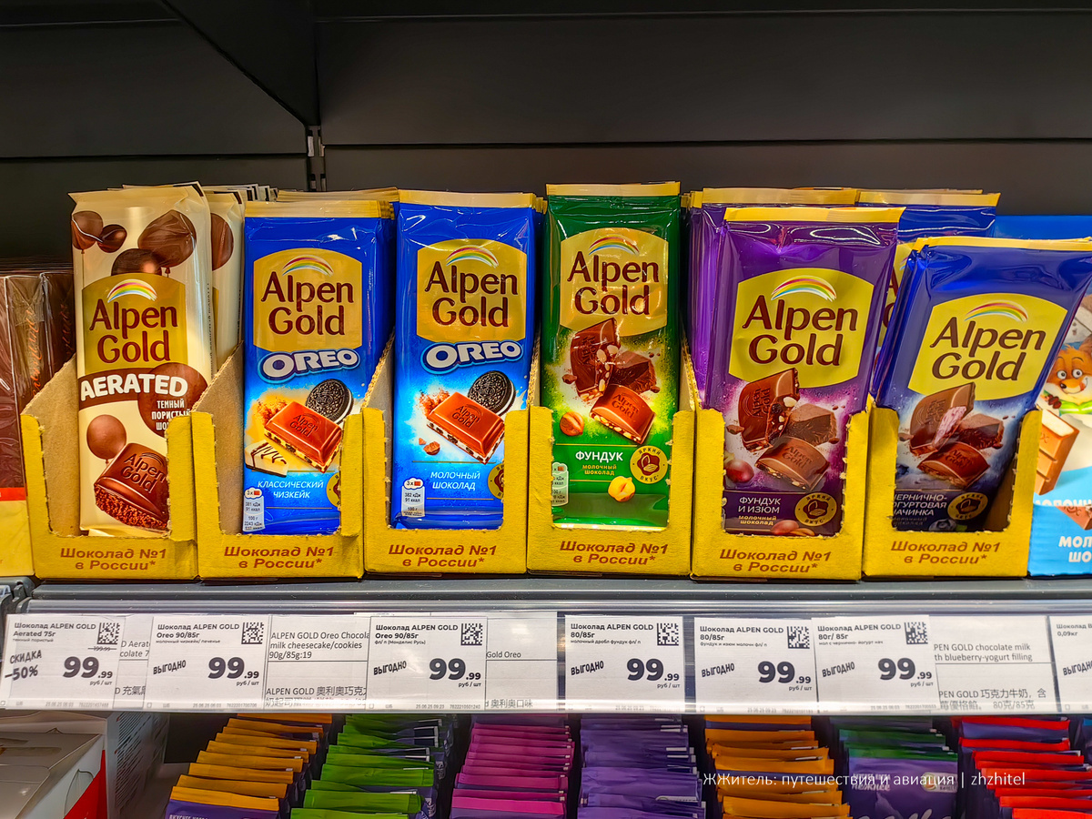 Шоколадки — 99,99 рублей. Да у нас в городе этот Alpen Gold во многих магазинах дороже.